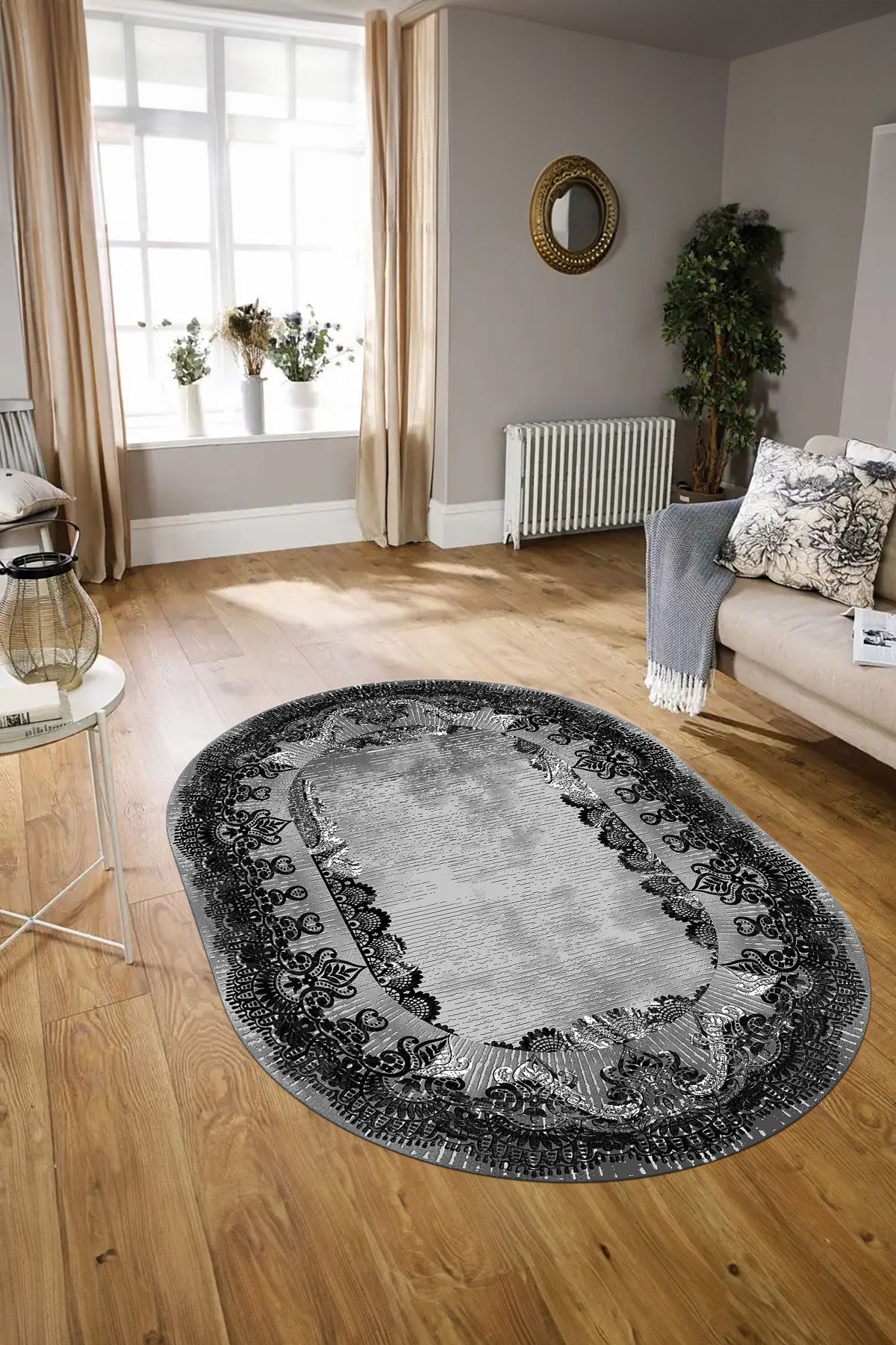 Dijital Baskılı Kaymaz Yıkanabilir Klasik Oval Yolluk Mutfak Salon Halısı, N-O-KLASİK-08-KAHVE, Dijital Baskılı Kaymaz Yıkanabilir Klasik Oval Yolluk Mutfak Salon Halısı, N-O-KLASİK-08-KAHVE, 160 x 230