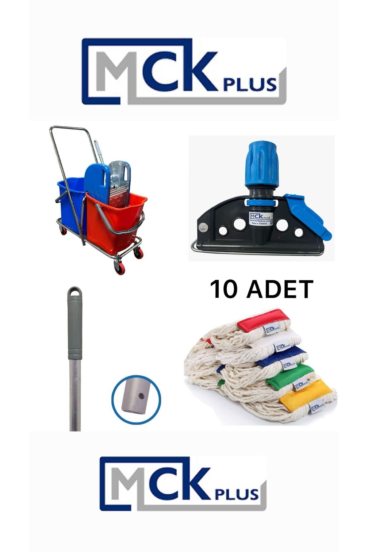 Çift Kovalı Krom Temizlik Arabası Paspas Arabası Sap Mop Aparat(özel Plastik Presli ) MCK Plus-875