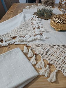 El Dantelli Püsküllü Runner Ranır Örtü Buldan Işi Keten Sehpa Masa Üstü Örtüsü Şömen El Dantelli Püsküllü Runner Ranır Örtü Buldan Işi Keten Sehpa Masa Üstü Örtüsü Şömen dantl66 تک سایز