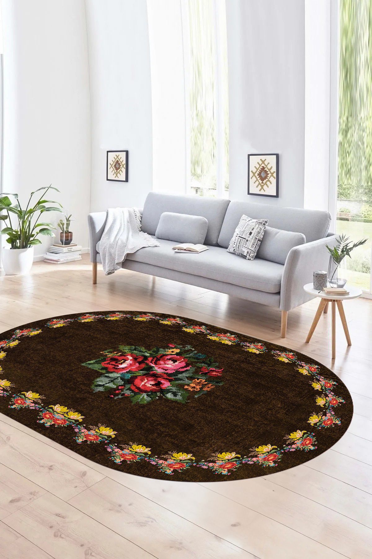 Dijital Baskılı Kaymaz Yıkanabilir Klasik Oval Yolluk Mutfak Salon Halısı, N-O-KLASİK-05-GRİ Dijital Baskılı Kaymaz Yıkanabilir Klasik Oval Yolluk Mutfak Salon Halısı, N-O-KLASİK-05-GRİ 160 x 230