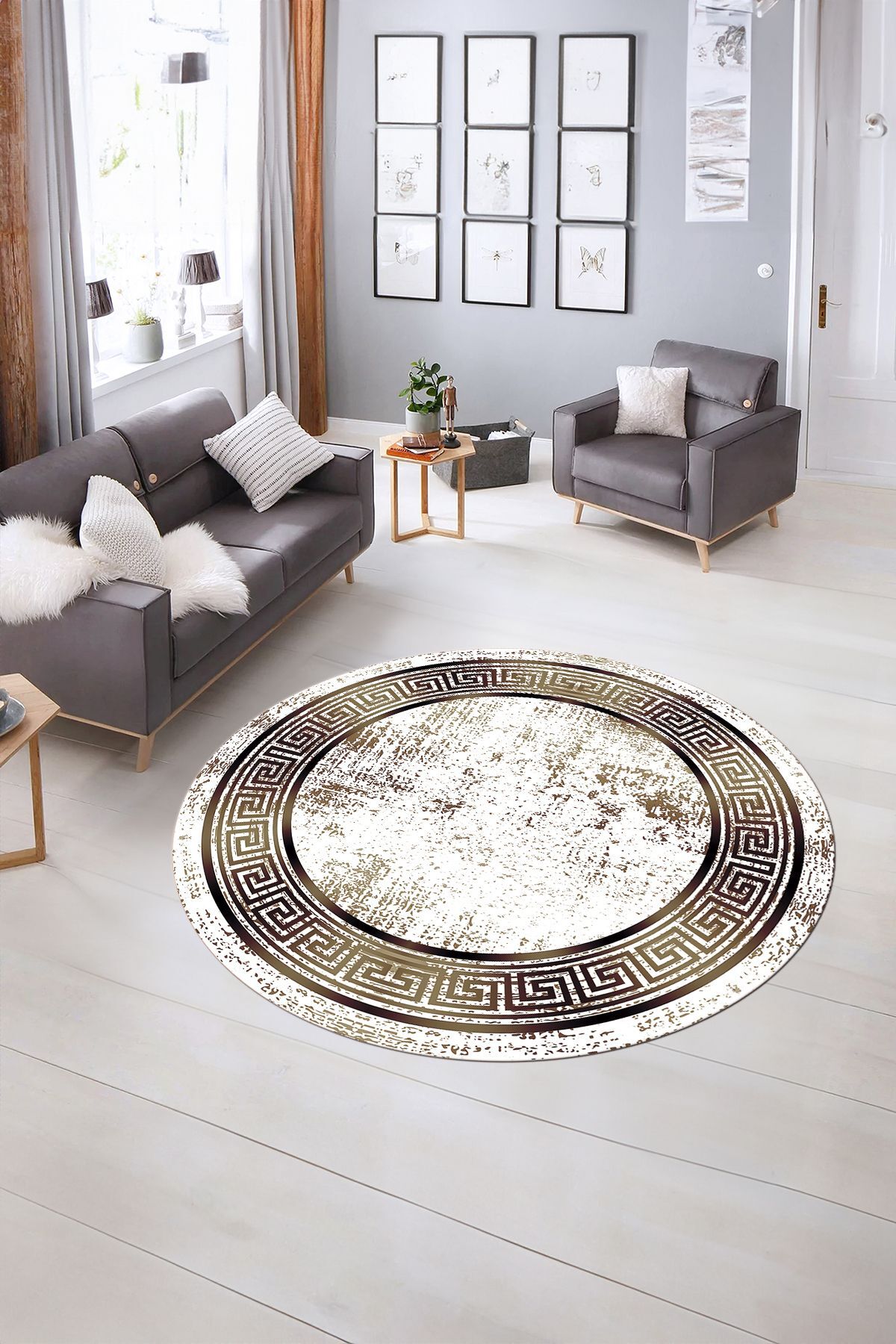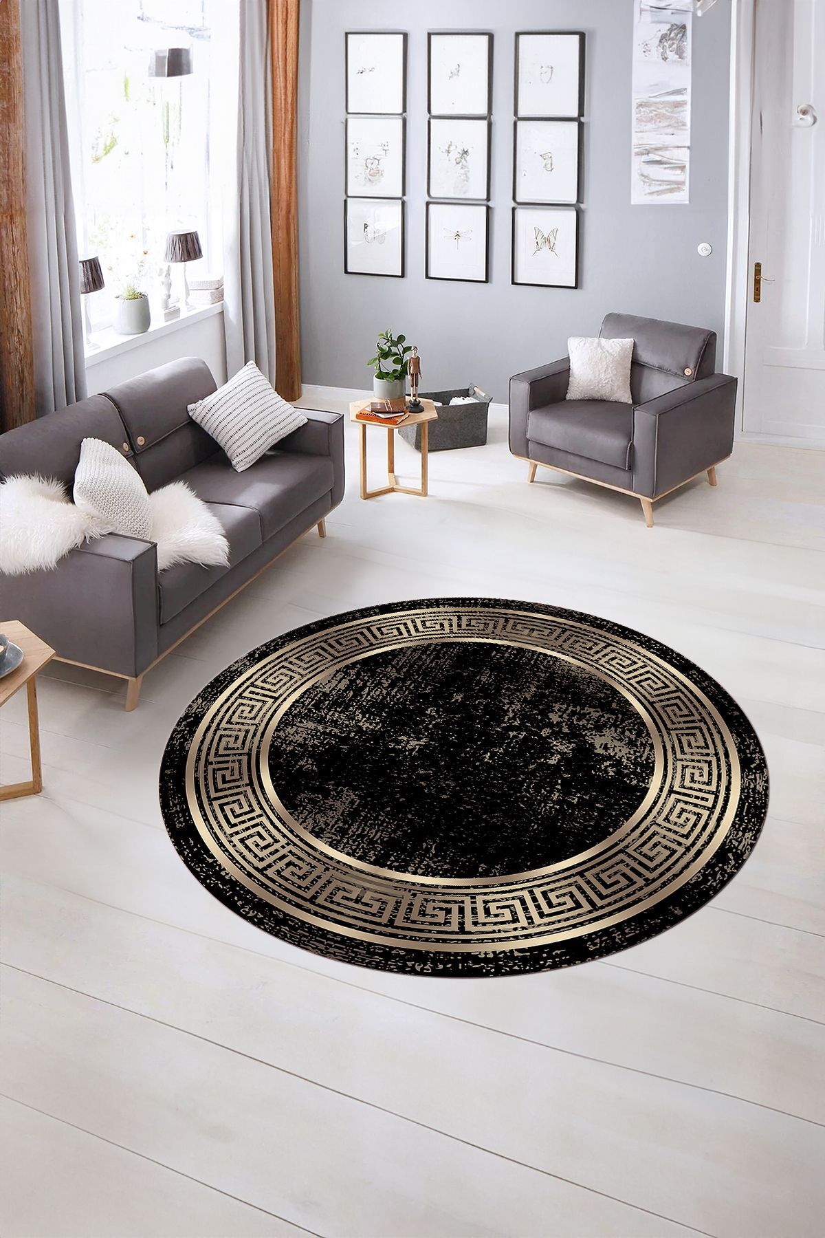 Dijital Kaymaz Yıkanabilir Çerçeveli Desen Yuvarlak Mutfak Salon Halısı, N-Y-ÇERÇEVELİ-13-SİYAH, Dijital Kaymaz Yıkanabilir Çerçeveli Desen Yuvarlak Mutfak Salon Halısı, N-Y-ÇERÇEVELİ-13-SİYAH, 180 x 180
