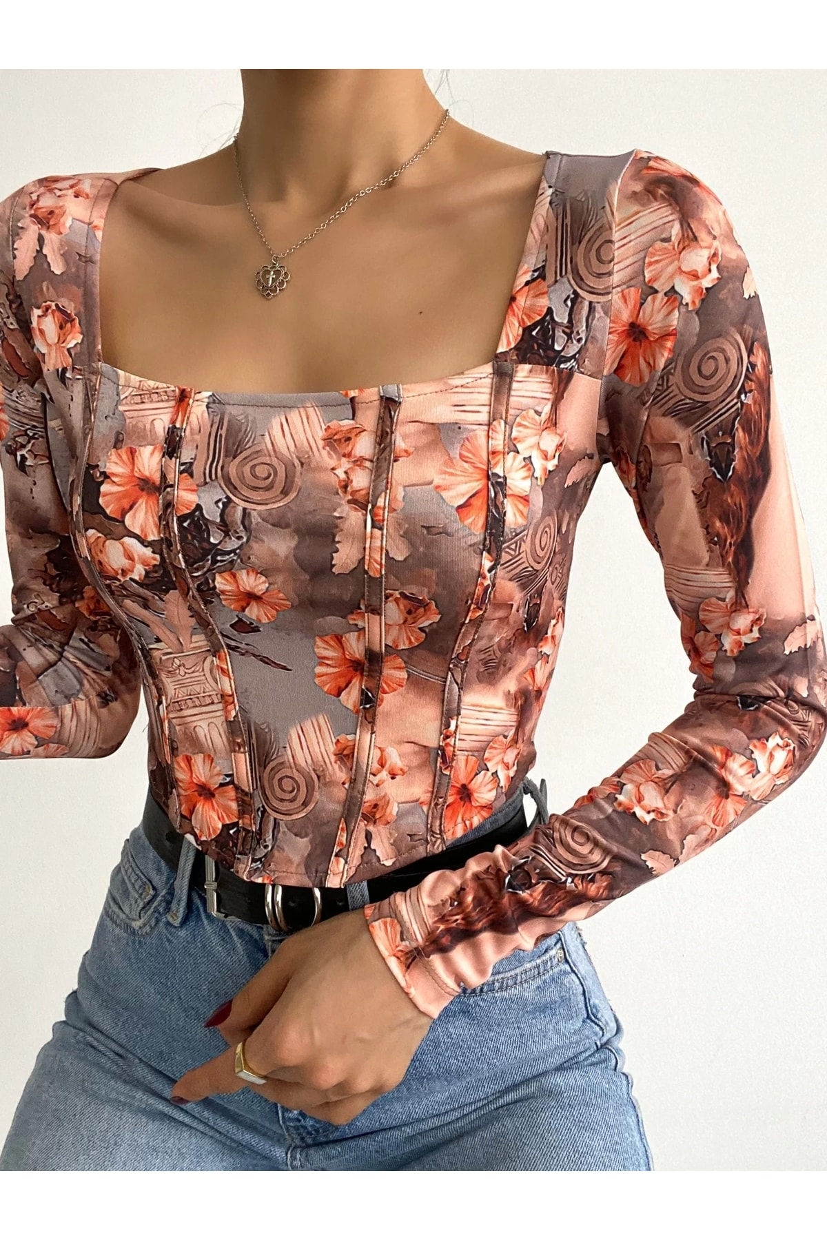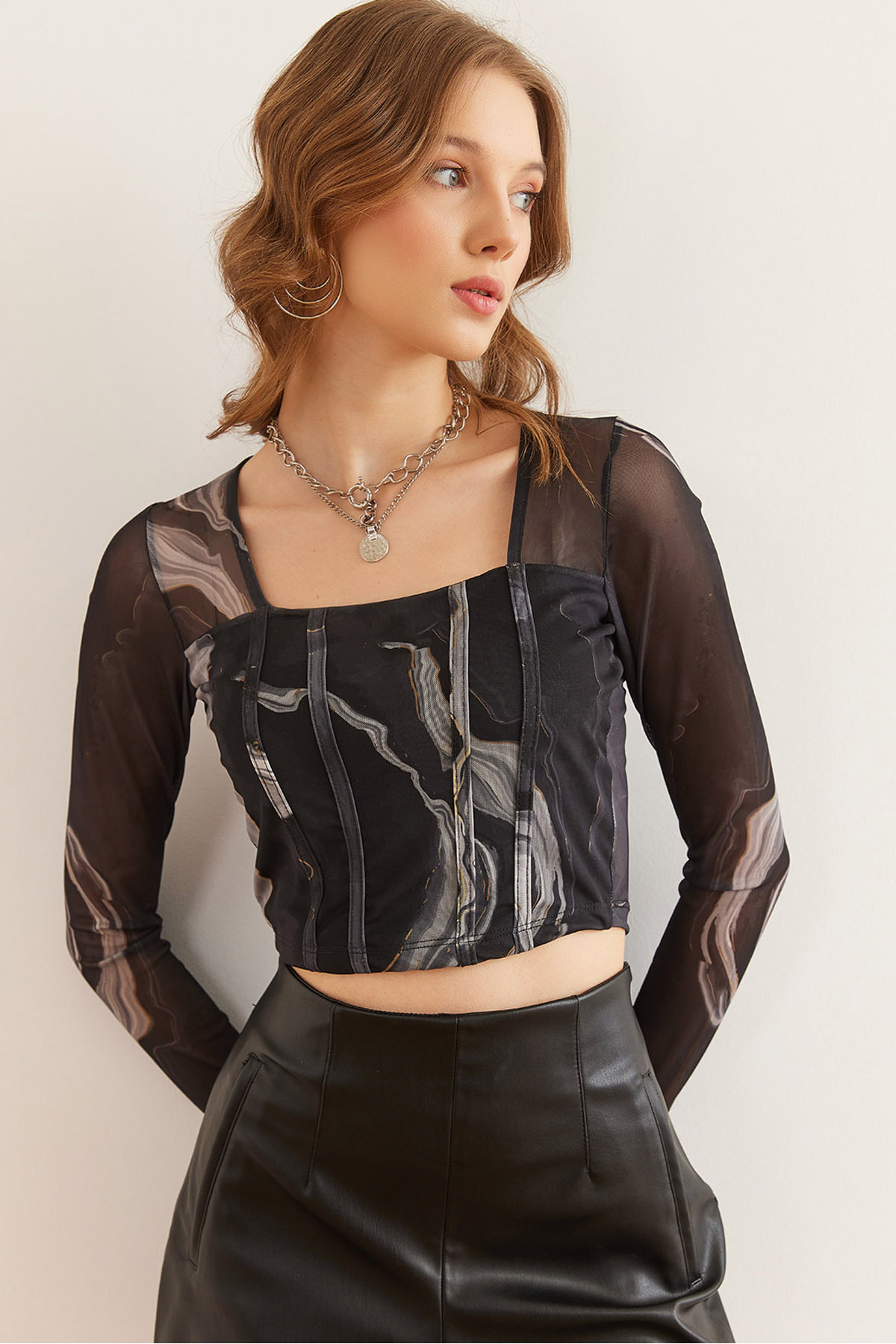 Kare Yaka Tül Crop BLUZ Kare Yaka Tül Crop BLUZ 9998knoablz0001 M