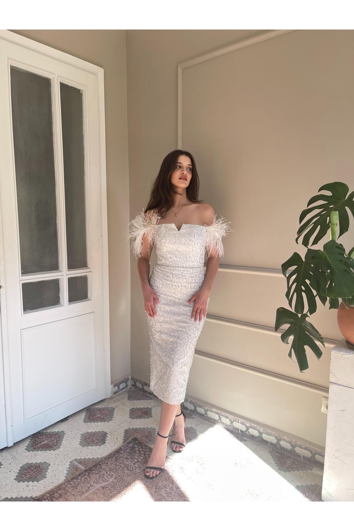 Göğüs Ve Kol Kısmı Pul Detay Balon Kol Midi Elbise Göğüs Ve Kol Kısmı Pul Detay Balon Kol Midi Elbise 2001 42