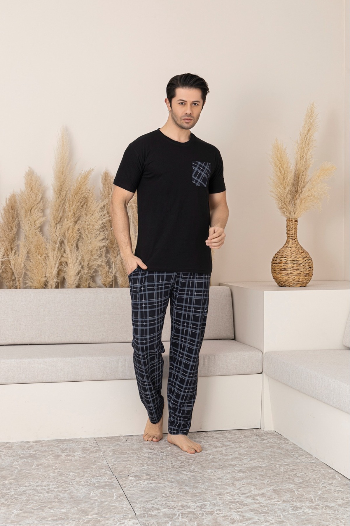 Erkek Cepli Baskılı Baskılı Kısa Kollu Örme Penye Pijama Takımı Erkek Cepli Baskılı Baskılı Kısa Kollu Örme Penye Pijama Takımı SDCTTN 2XL