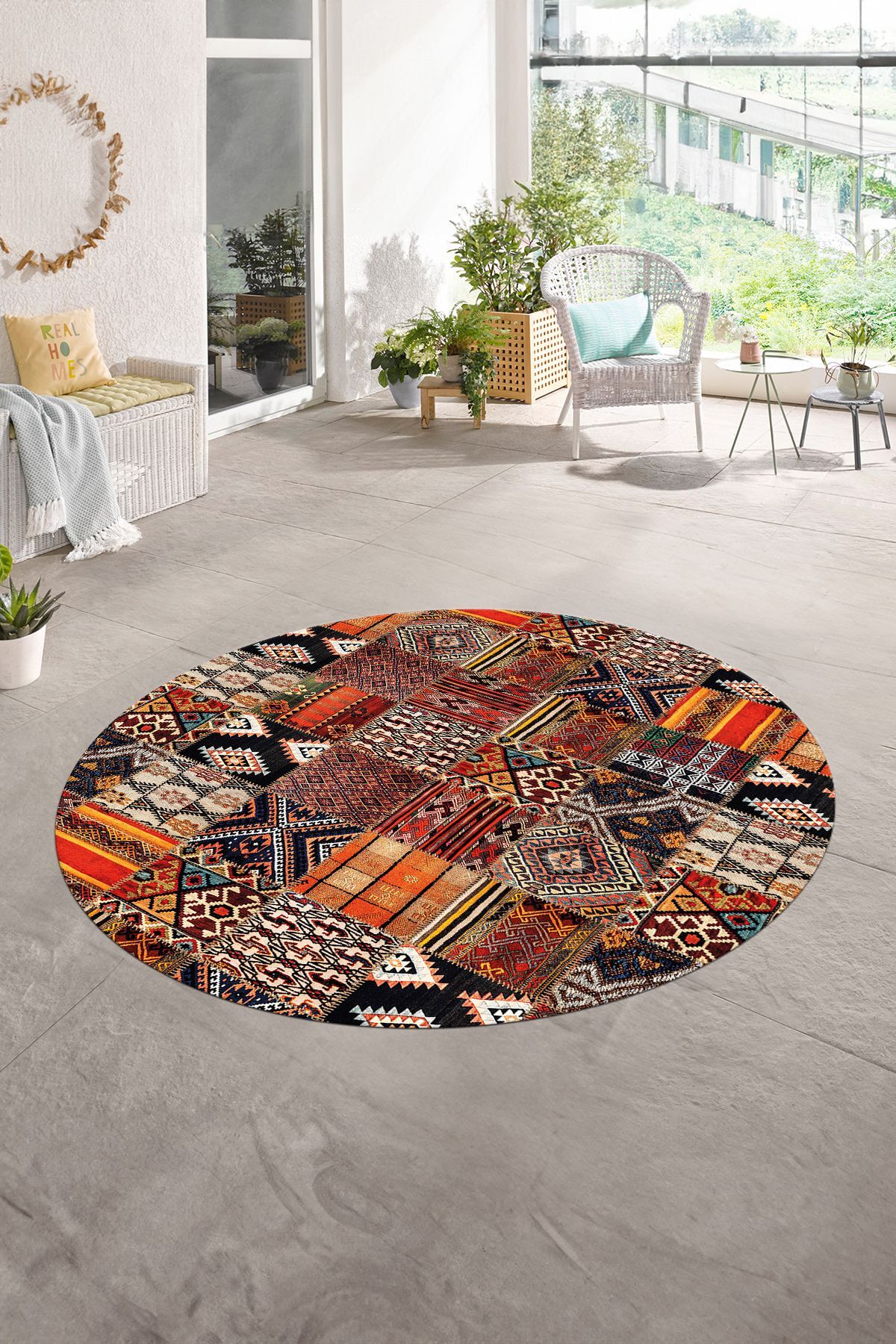 Dijital Kaymaz Yıkanabilir Patchwork Yuvarlak Balkon Mutfak Salon Halısı, N-Y-PATCHWORK-06-KIRMIZI, Dijital Kaymaz Yıkanabilir Patchwork Yuvarlak Balkon Mutfak Salon Halısı, N-Y-PATCHWORK-06-KIRMIZI, 180 x 180