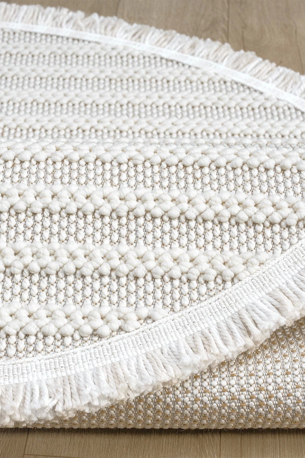 Beyaz Yumuşak Dokulu Daire Halı Kilim Salon Mutfak Koridor Yolluk Dokuma Makine Halısı 004 DAİRE Beyaz Yumuşak Dokulu Daire Halı Kilim Salon Mutfak Koridor Yolluk Dokuma Makine Halısı 004 DAİRE DESENLİ ATHENA 200 x 200