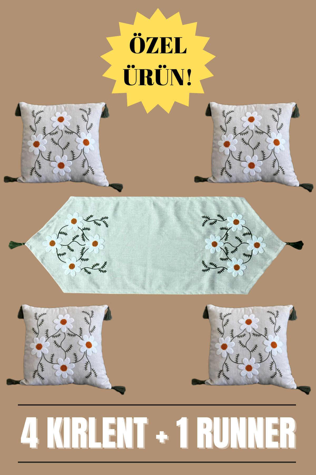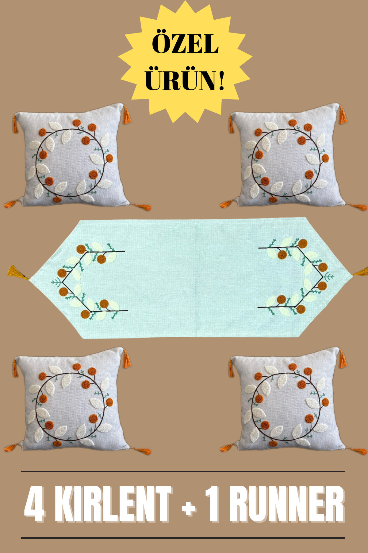 Bej Etnik Çift Tarafı Baskılı 4'lü Yastık Kılıfı Kırlent Kılıfı Ve Amerikan Servis Runner Set Bej Etnik Çift Tarafı Baskılı 4'lü Yastık Kılıfı Kırlent Kılıfı Ve Amerikan Servis Runner Set BEBE-RUNNERKIRLENTSET 43 x 43