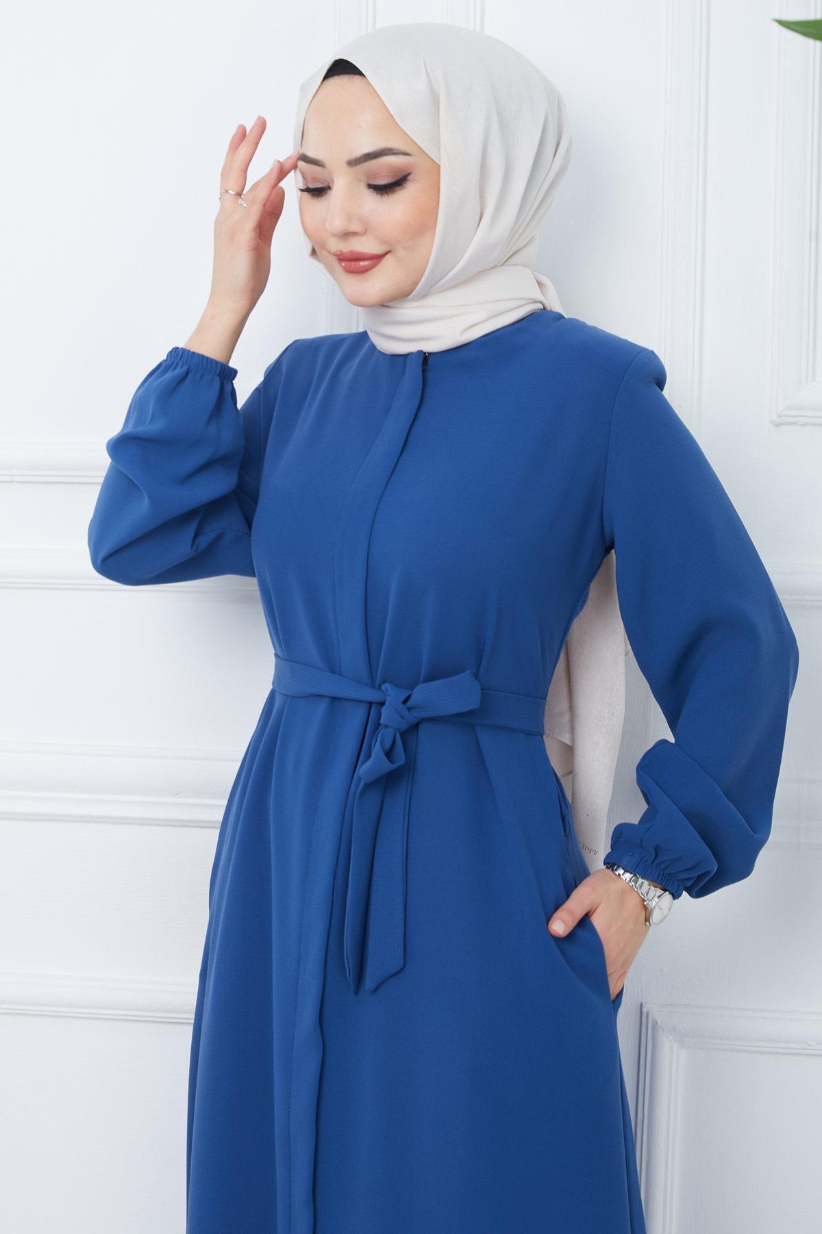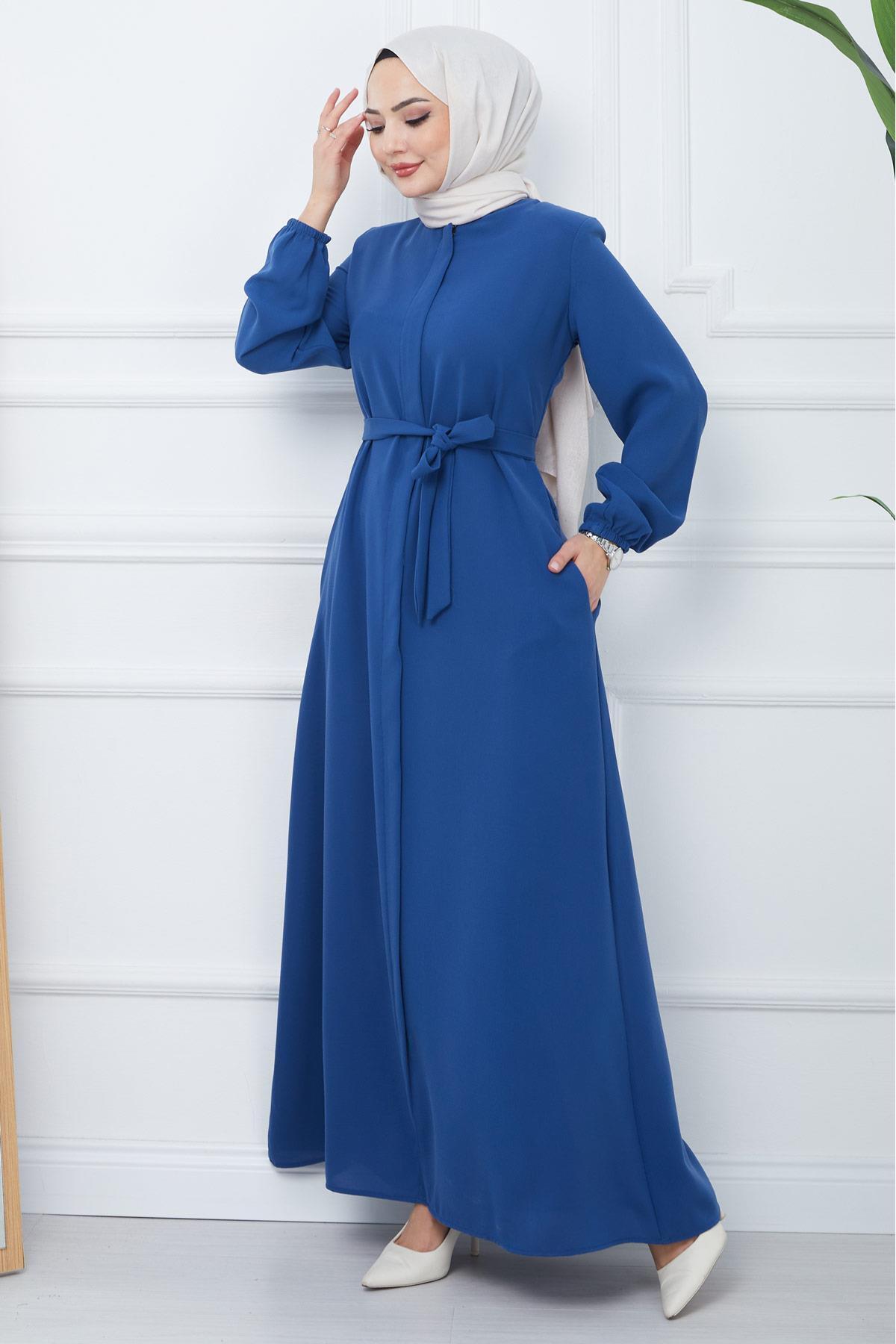 Gizli Patlı Kuşaklı Ferace İndigo HM2361 Gizli Patlı Kuşaklı Ferace İndigo HM2361 52