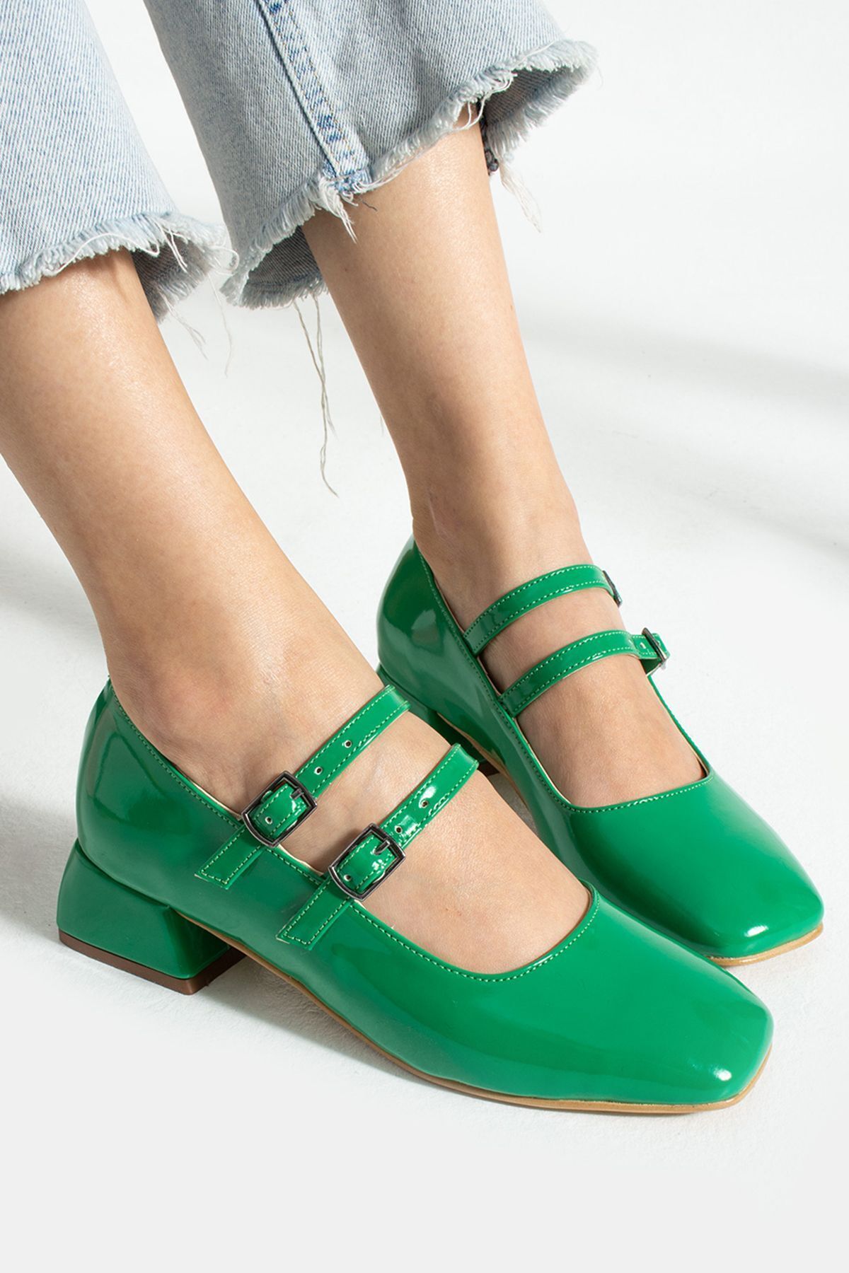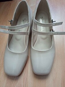 Kadın Mary Jane Bej Rugan Arka Kapalı Çift Bant Kare Burunlu Kısa Blok Topuklu Ayakkabı Kadın Mary Jane Bej Rugan Arka Kapalı Çift Bant Kare Burunlu Kısa Blok Topuklu Ayakkabı m152 40