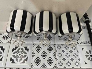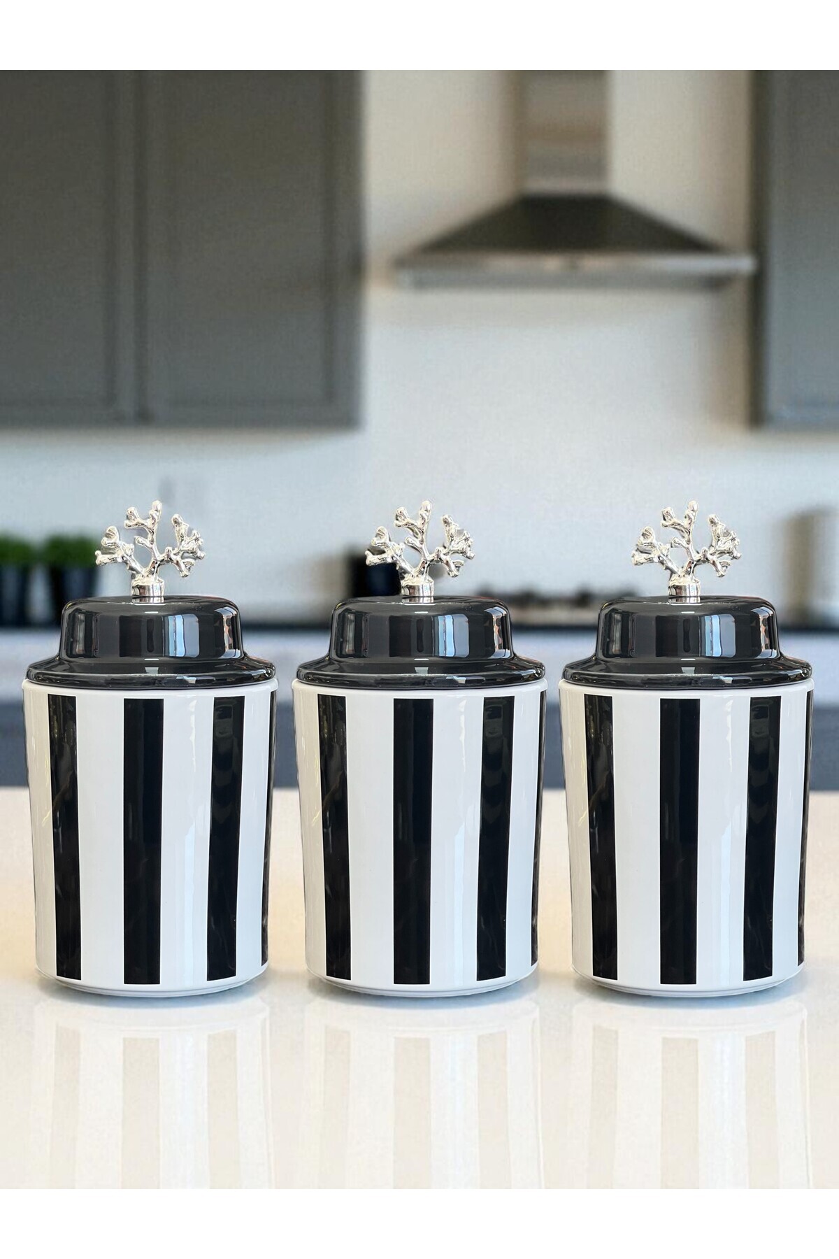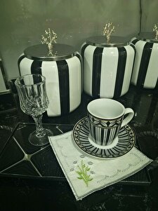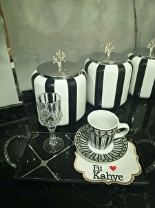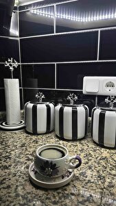 Baharatlık Seramik Set 3 lü Siyah Dik Çizgi Gümüş Kapak 1.4 Litre ( Kahve,Çay,Şeker ) Feray Home Baharatlık Seramik Set 3 lü Siyah Dik Çizgi Gümüş Kapak 1.4 Litre ( Kahve,Çay,Şeker ) Feray Home BH010 تک سایز