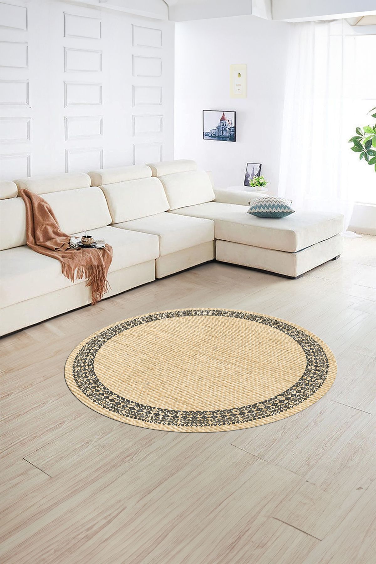 Dijital Kaymaz Yıkanabilir Jüt-Hasır Desen Yuvarlak Yolluk Mutfak Salon Halısı, N-Y-JÜT-09-GRİ, Dijital Kaymaz Yıkanabilir Jüt-Hasır Desen Yuvarlak Yolluk Mutfak Salon Halısı, N-Y-JÜT-09-GRİ, 180 x 180