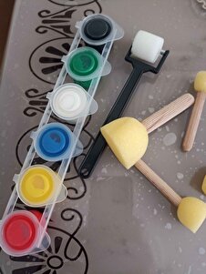 6x15 ml Parmak Boyası, Ponpon Fırça, Çocuk Renkli Fırça, Sünger Rulo Sanatsal Boyama Seti 6x15 ml Parmak Boyası, Ponpon Fırça, Çocuk Renkli Fırça, Sünger Rulo Sanatsal Boyama Seti 00162 تک سایز