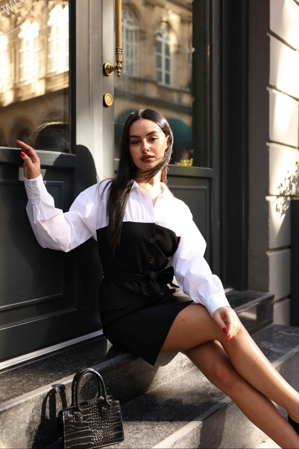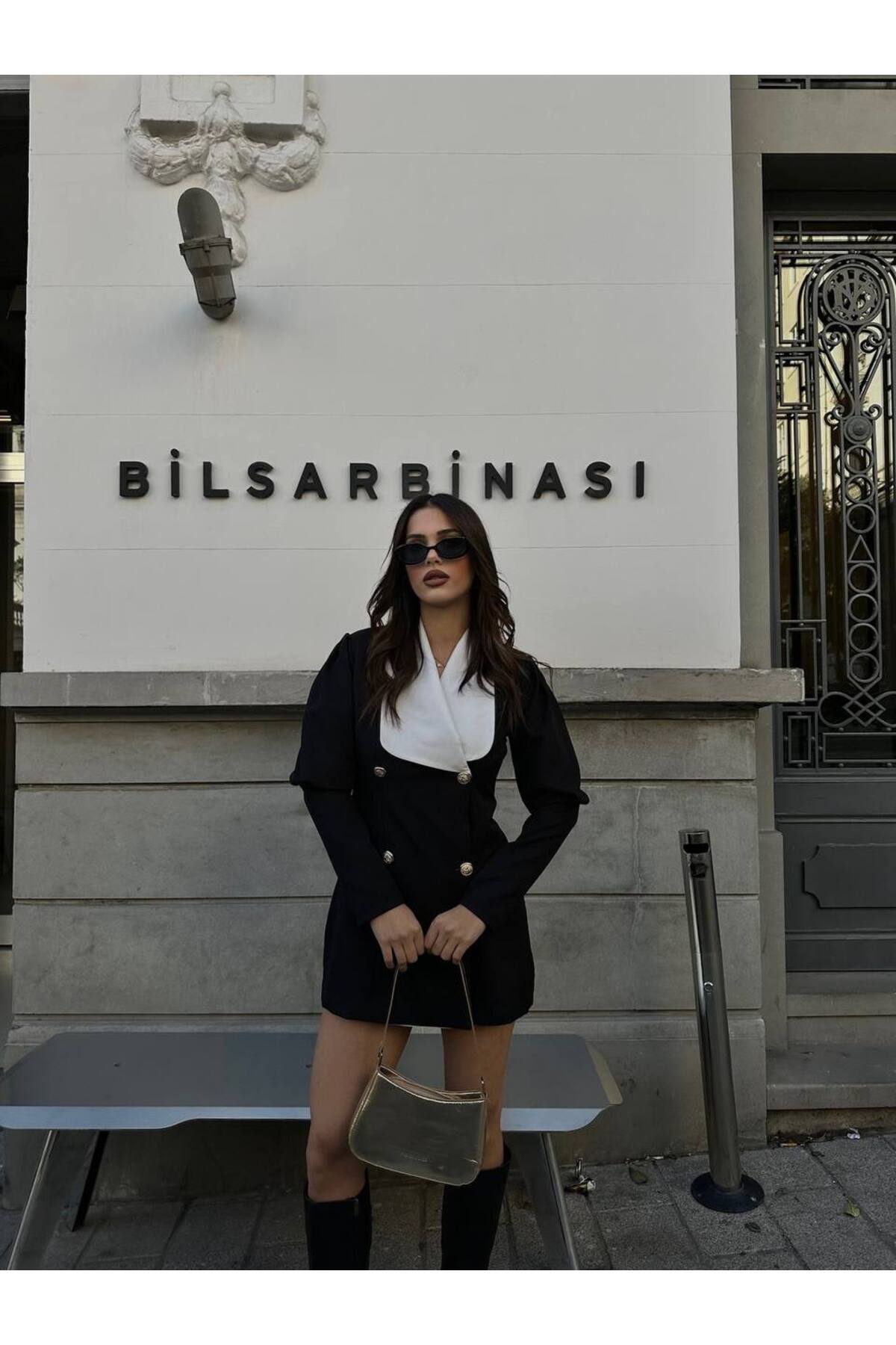Siyah - Gömlek Yaka Kemerli Elbise Siyah - Gömlek Yaka Kemerli Elbise AYN019 L