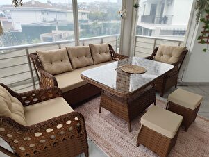 Eren Rattan Puflu Bahçe Balkon Takımı 3+1+1 Kahve Eren Rattan Puflu Bahçe Balkon Takımı 3+1+1 Kahve 1776 تک سایز