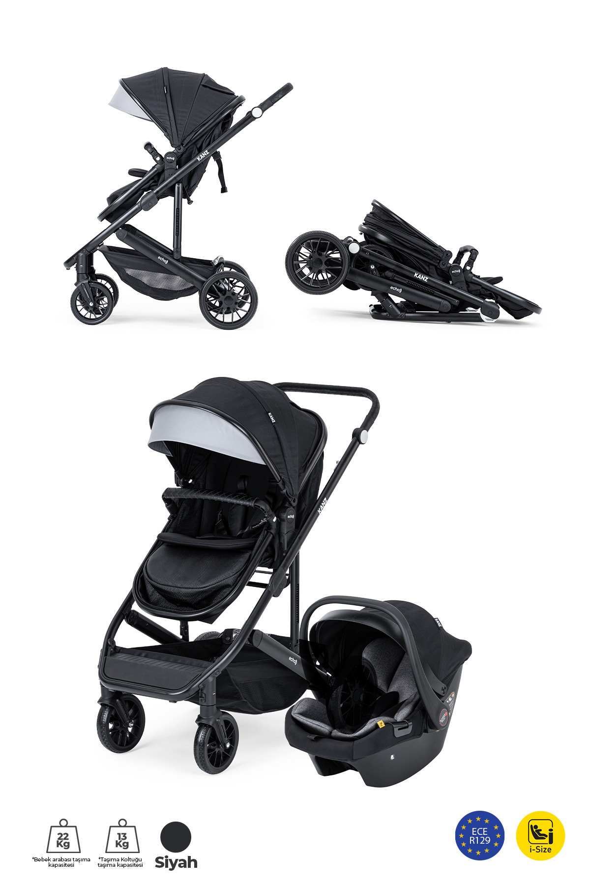 Okie Dokie Travel Sistem Bebek Arabası Siyah Okie Dokie Travel Sistem Bebek Arabası Siyah KZ-OKIEDOKIE تک سایز