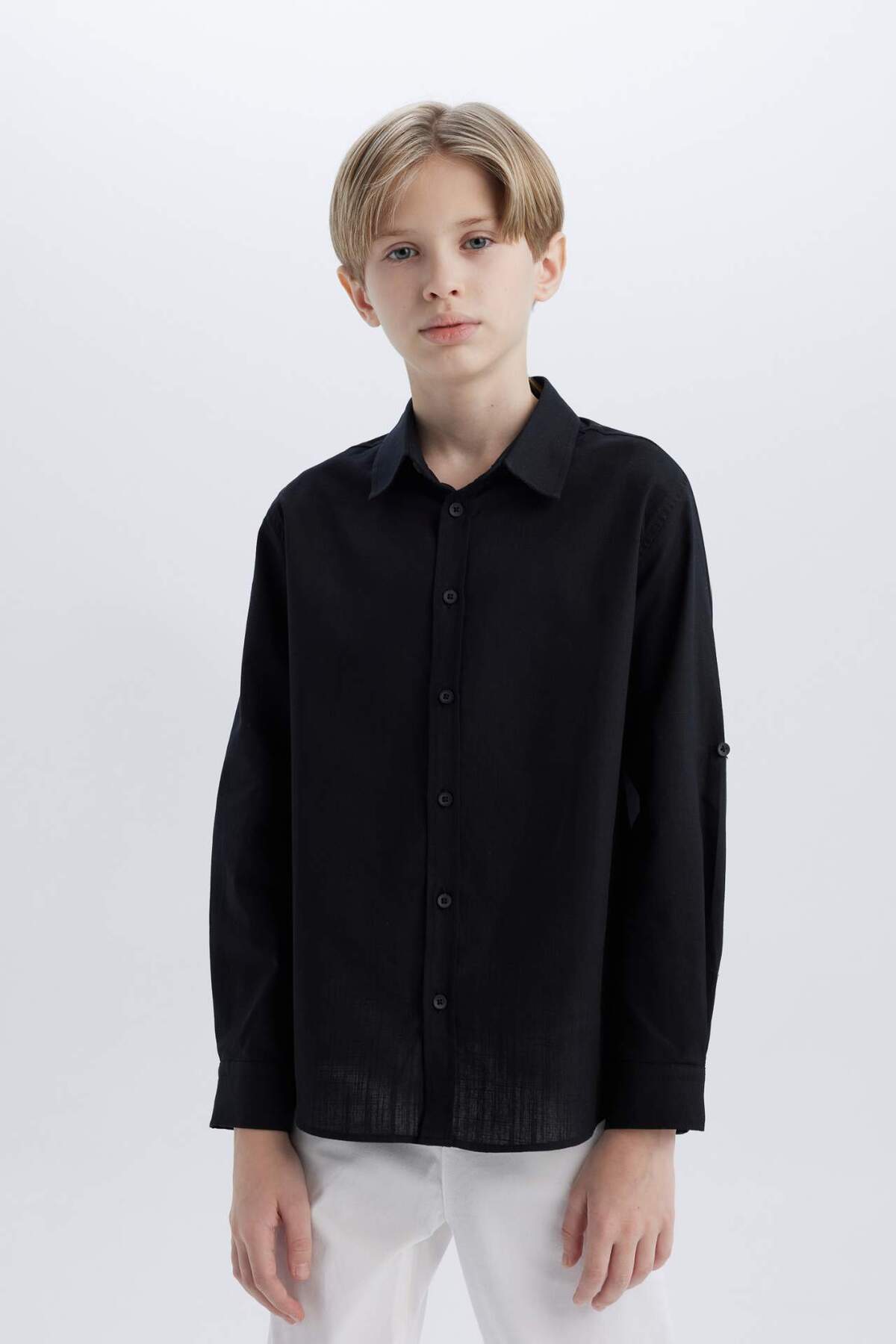 Erkek Çocuk Polo Yaka Siyah Basic Düz Uzun Kollu Gömlek W3236A624SM Erkek Çocuk Polo Yaka Siyah Basic Düz Uzun Kollu Gömlek W3236A624SM 13-14 Yaş