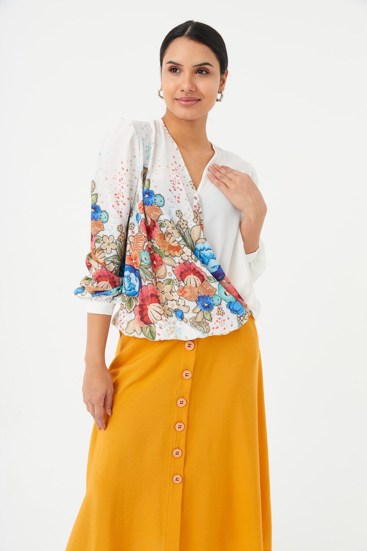 Kadın Yuvarlak Açık Yaka Pileli Uzun Şifon Kollu Bluz Kadın Yuvarlak Açık Yaka Pileli Uzun Şifon Kollu Bluz HN3974 XL