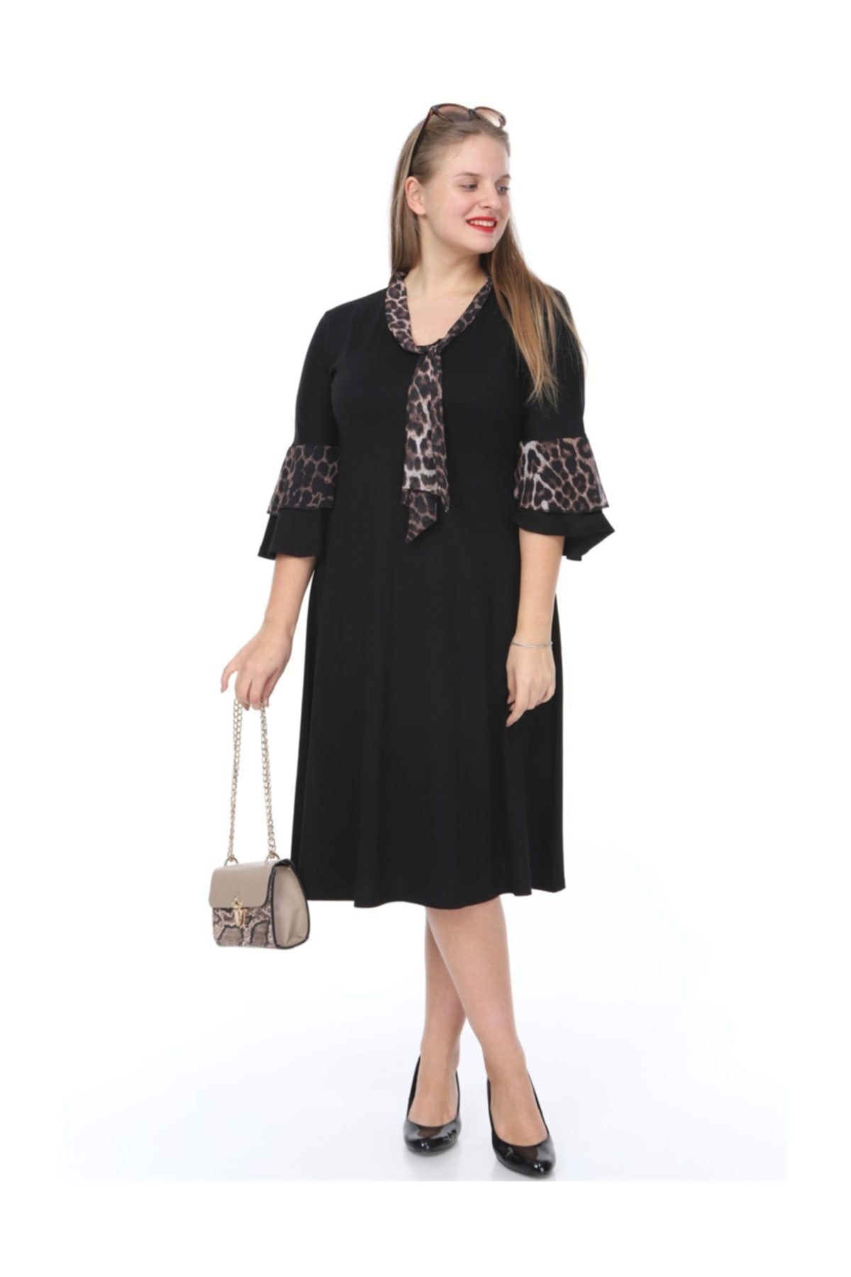 V Yaka Şeritli Cepli Örme Büyük Beden Elbise V Yaka Şeritli Cepli Örme Büyük Beden Elbise MJ00302 Tek Ebat