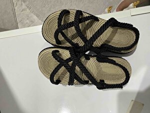 Kadın Siyah Hasır Rahat Taban Günlük Halat İpli Sandalet Kadın Siyah Hasır Rahat Taban Günlük Halat İpli Sandalet 30-13-24 40