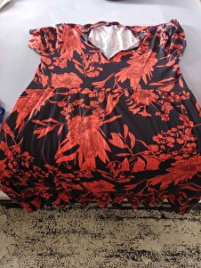 Kadın Kırmızı Palmiye Desen Kısa Kol Robalı Elbise Kadın Kırmızı Palmiye Desen Kısa Kol Robalı Elbise ROB-FIR-PLM 52-54