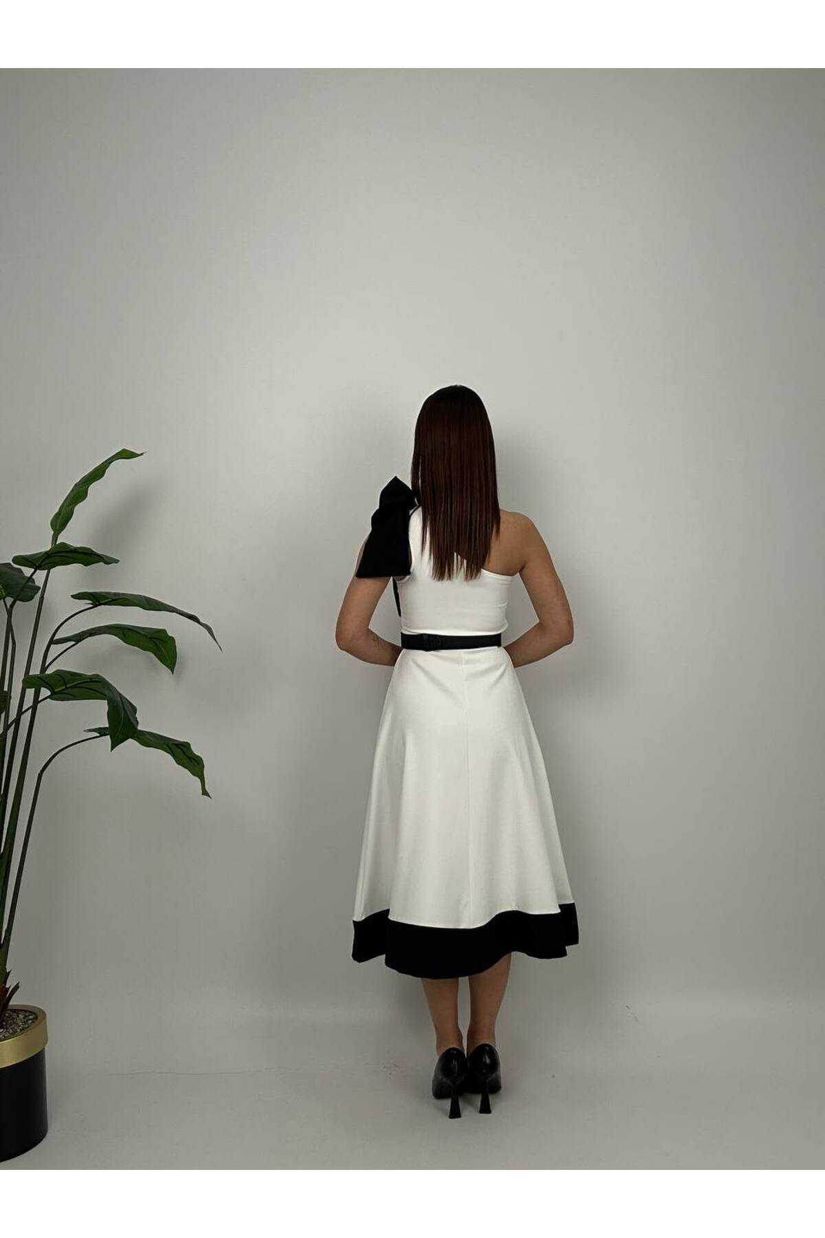 Kurdele Detaylı Kemerli Elbise Kurdele Detaylı Kemerli Elbise 2040-01 S