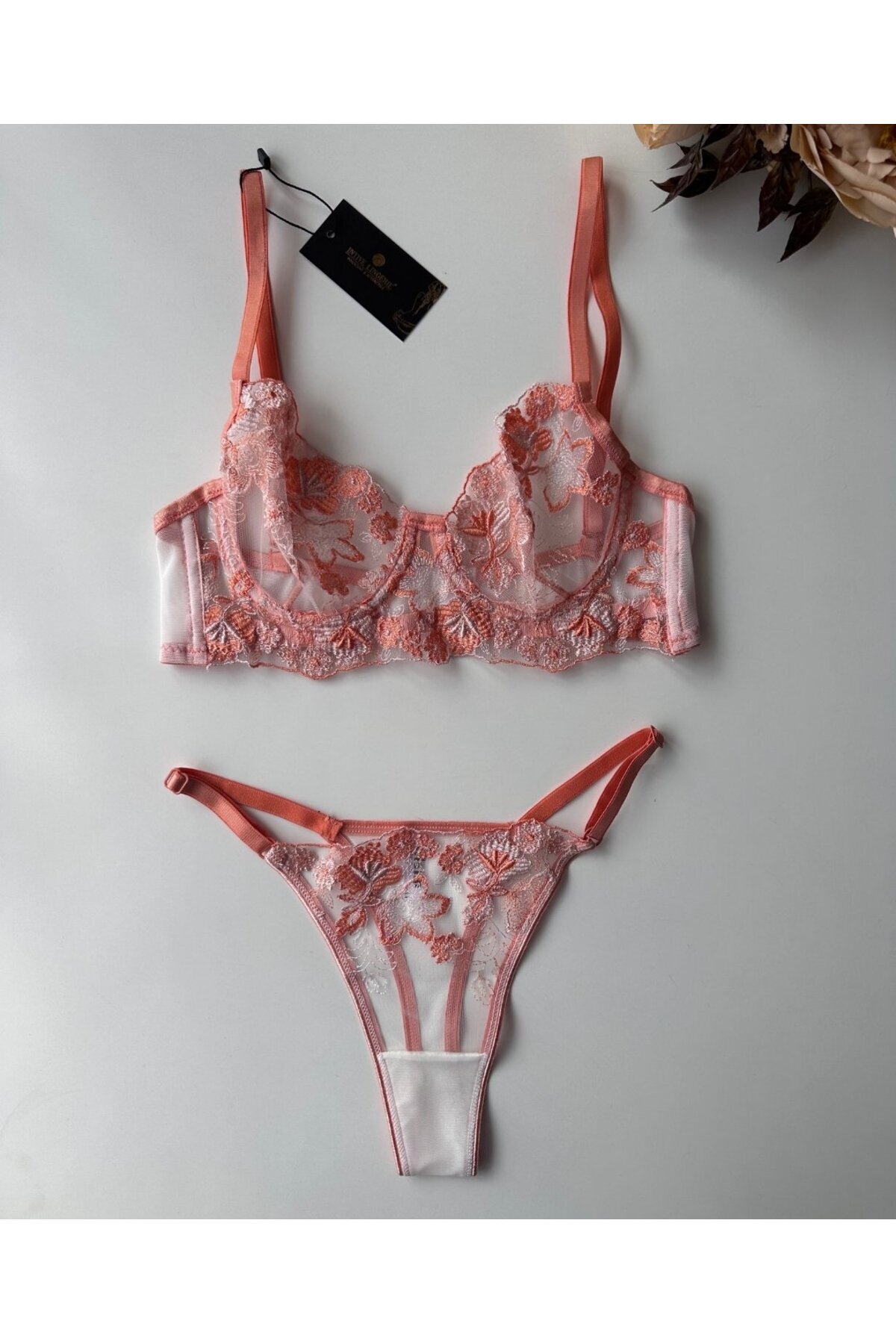 Flower Love Çiçek Desenli Transparan Dantel Sütyen Takım (Pembe, Mor, Somon) Flower Love Çiçek Desenli Transparan Dantel Sütyen Takım (Pembe, Mor, Somon) INTVFLOLOVE 90B