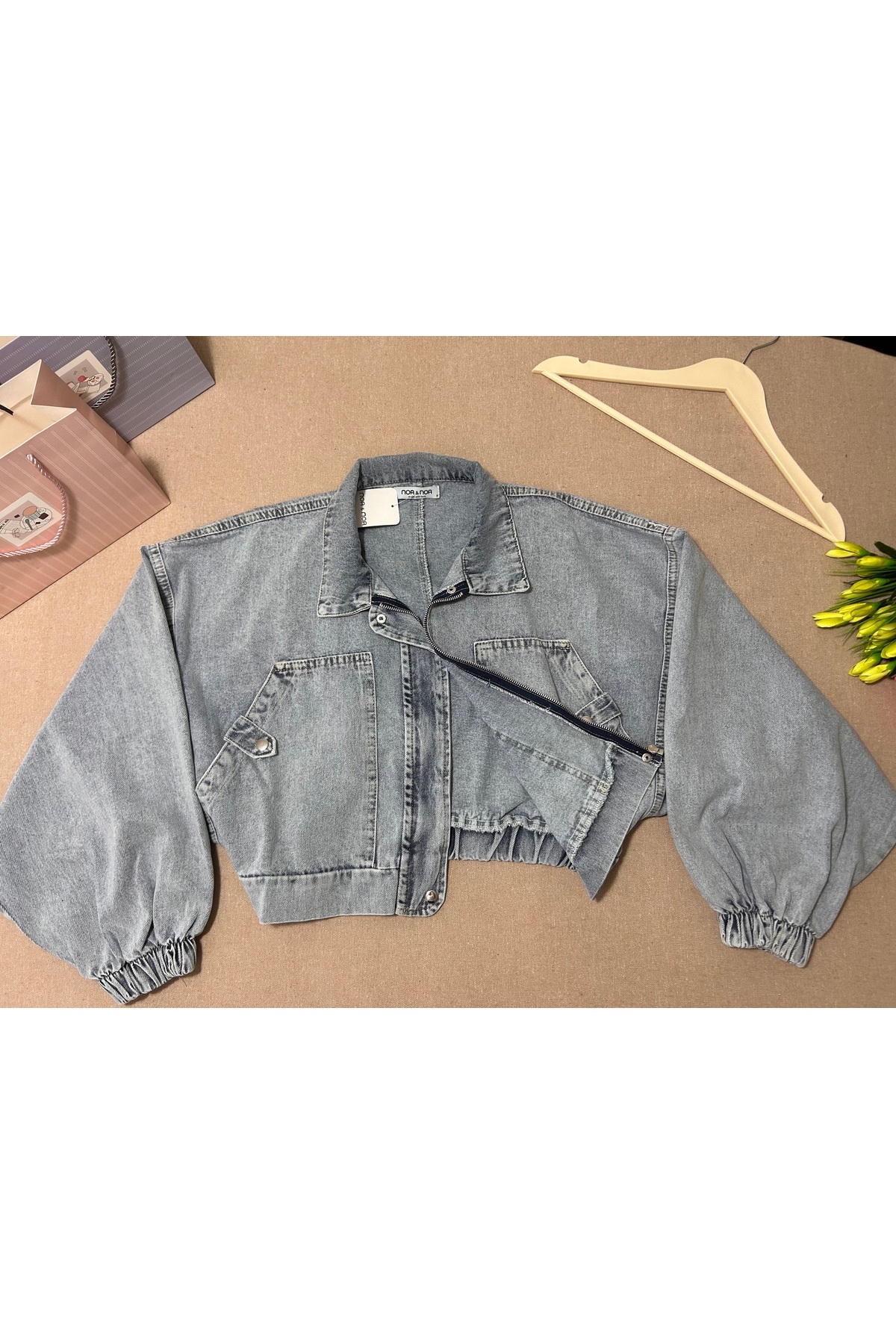 Gömlek Yaka Göğüs Cepli Uzun Kollu Fermuarlı Kısa Crop Denim Ceket Gömlek Yaka Göğüs Cepli Uzun Kollu Fermuarlı Kısa Crop Denim Ceket TYCLFE2CLN170821135430786 L