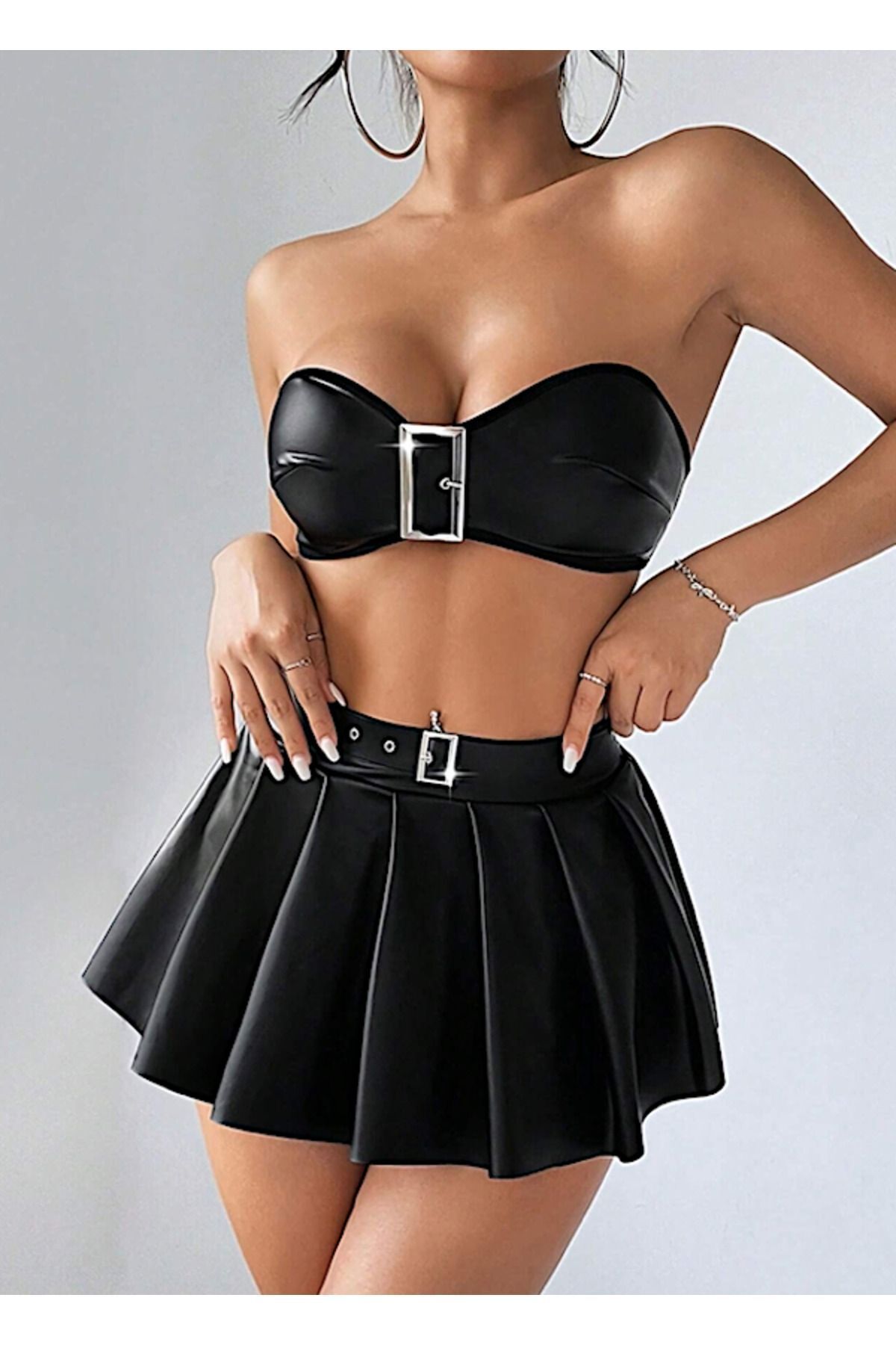 Metal Aksesuarlı Pileli Etekli Deri Mini Konforlu Önden Bağlamalı Çekici Fantezi Gecelik Siyah Metal Aksesuarlı Pileli Etekli Deri Mini Konforlu Önden Bağlamalı Çekici Fantezi Gecelik Siyah TYCDYWOFSN170832556371660 4XL