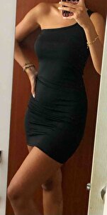 Kadın Siyah Tek Omuz Mini Elbise CG332 Kadın Siyah Tek Omuz Mini Elbise CG332 L