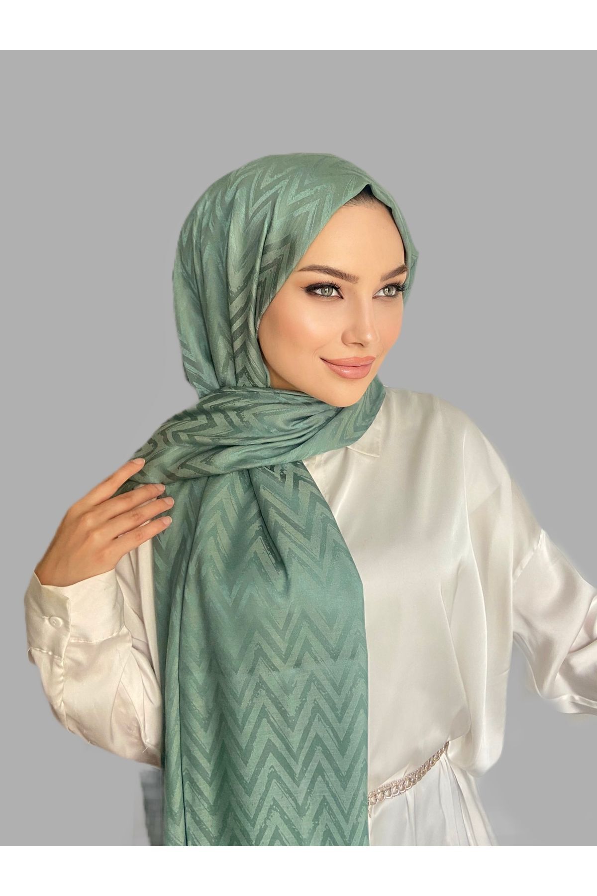 Zikzak Desen Haki Pamuk Jakar Şal Zikzak Desen Haki Pamuk Jakar Şal Z-10001 75 x 200