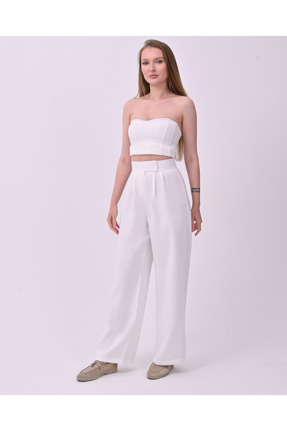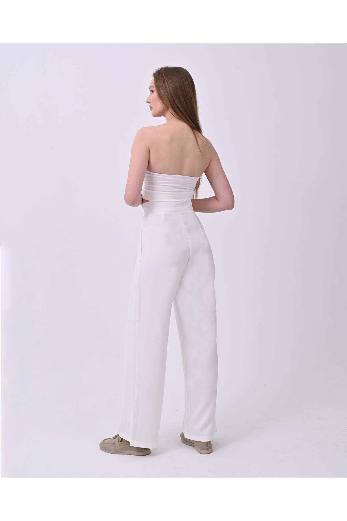 Kadın Yüksk Bel Cırtlı Beli Palazzo Pantolon Kadın Yüksk Bel Cırtlı Beli Palazzo Pantolon HZL2308 5XL