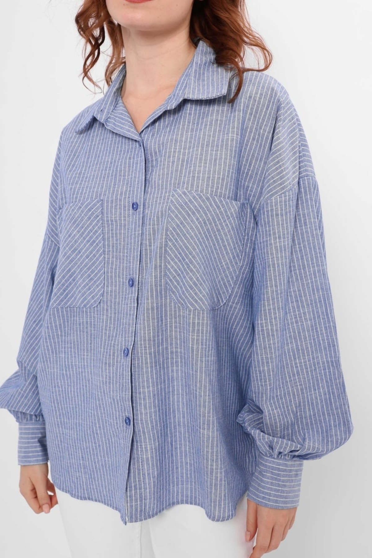 Mavi - Balon Kollu Çizgili Gömlek Mavi - Balon Kollu Çizgili Gömlek AYN017 L