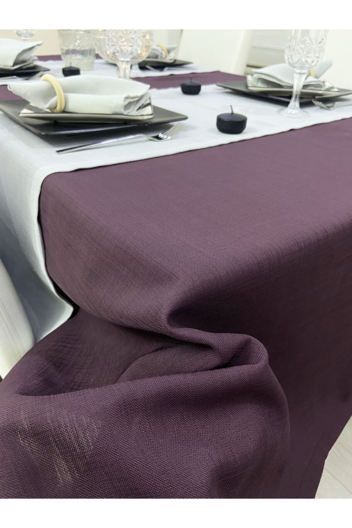 Keten Dokulu Gri Masa Örtüsü Keten Dokulu Gri Masa Örtüsü eno-ingdaakgri-mo200 140 x 170