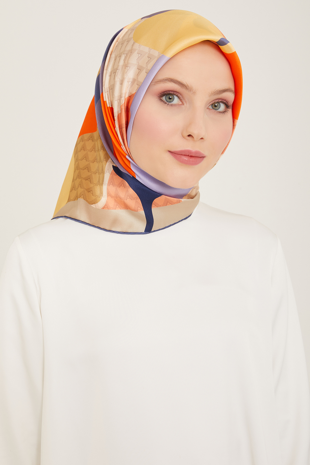 Turuncu - Taba Lale Desen Sura İpek Eşarp 9119 - 02 Turuncu - Taba Lale Desen Sura İpek Eşarp 9119 - 02 E24YA9119D01 Tek Ebat