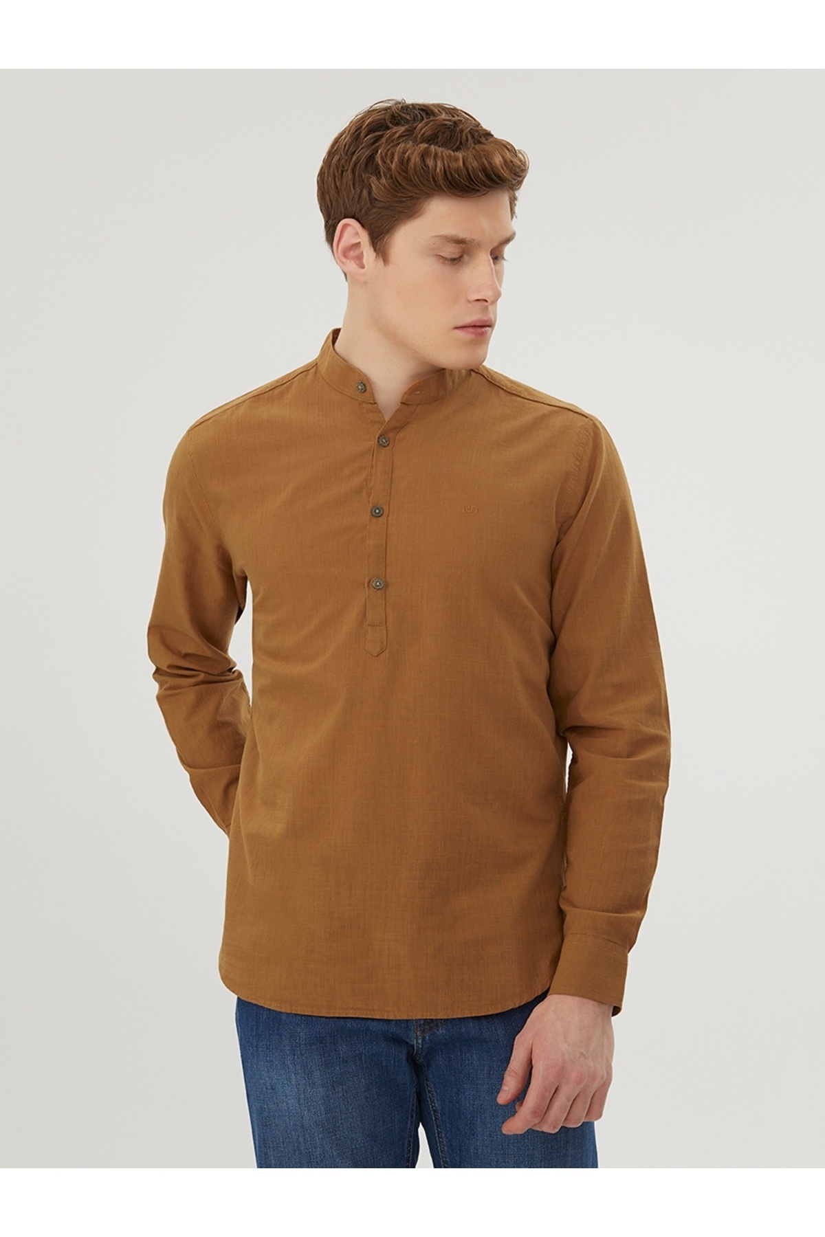 Keten Görünümlü Hakim Yaka Yeşil Gömlek Keten Görünümlü Hakim Yaka Yeşil Gömlek 012244921025008 3XL