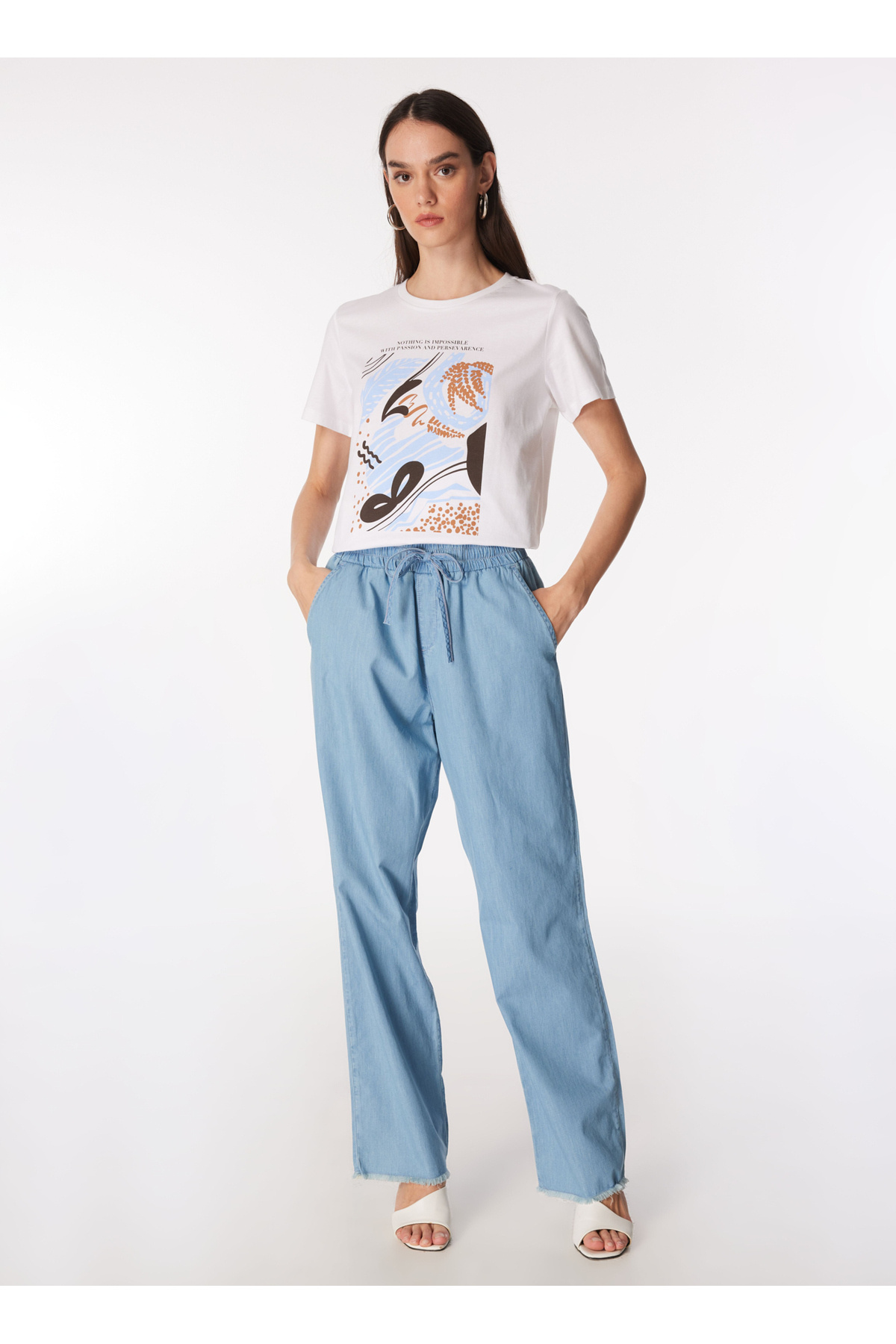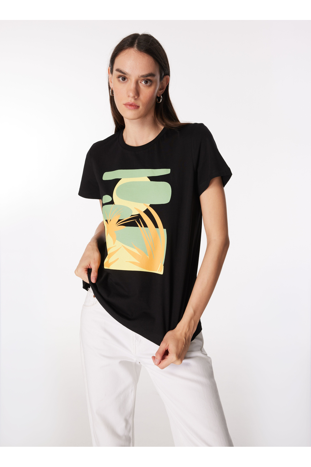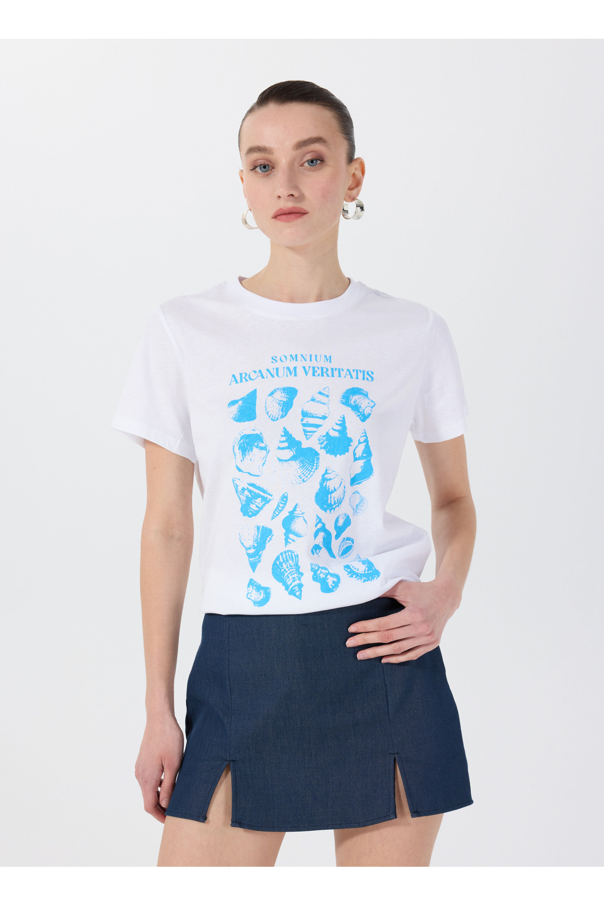 Bisiklet Yaka Baskılı Beyaz Kadın T-Shirt F4SL-TST0350 Bisiklet Yaka Baskılı Beyaz Kadın T-Shirt F4SL-TST0350 5003087328 XL