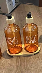 مشخصات فنی 2’li Ahşap Standlı Cam Sıvı Sabun ve Bulaşık Deterjanı Şişesi Sabunluk Amber 500 Ml - D/11 جنس کاج رنگ رنگ زرد Menşei CN مشخصات کلی
