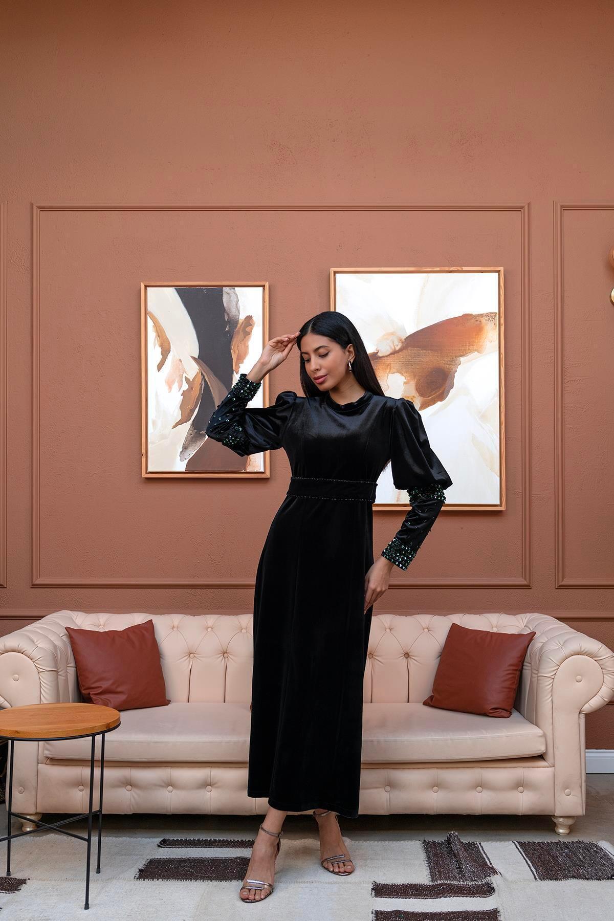 Kolları El İşlemeli Elbise Siyah Kolları El İşlemeli Elbise Siyah AW23ELB535 44