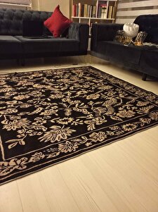 Çiçek ve Kuş Desenli Bej Siyah Dijital Baskılı Halı Kaydırmaz Tabanlı Yıkanabilir Halı Çiçek ve Kuş Desenli Bej Siyah Dijital Baskılı Halı Kaydırmaz Tabanlı Yıkanabilir Halı HD-MODERN 160 x 230