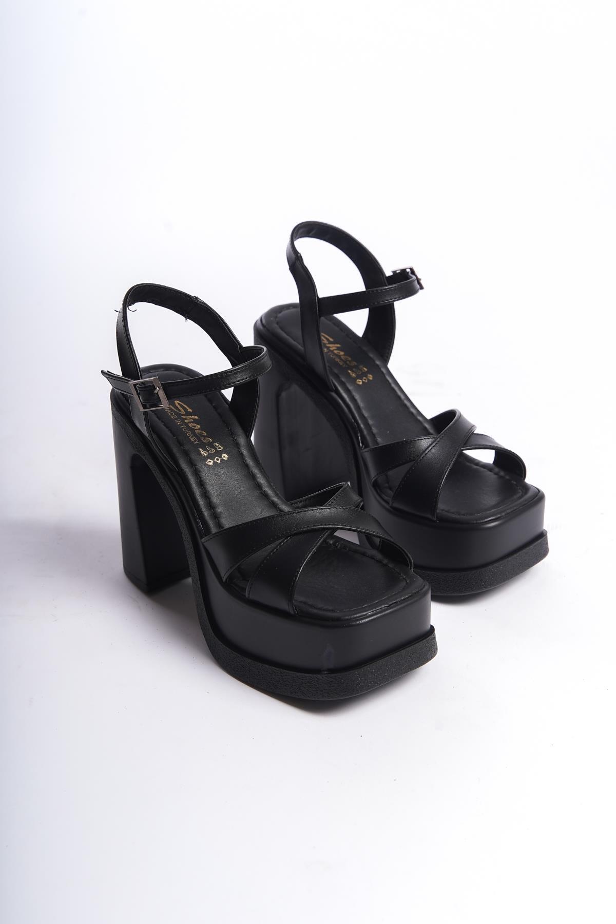 Kadın Keyli Siyah Cilt Çapraz Bantlı (12 cm ) Platform Topuklu Ayakkabı Kadın Keyli Siyah Cilt Çapraz Bantlı (12 cm ) Platform Topuklu Ayakkabı 24S0KEYLİ 40