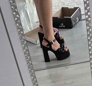 Kadın Sersi Siyah Fiyank Bantlı (12 cm ) Platform Topuklu Ayakkabı Kadın Sersi Siyah Fiyank Bantlı (12 cm ) Platform Topuklu Ayakkabı 24S0SERSİ 40