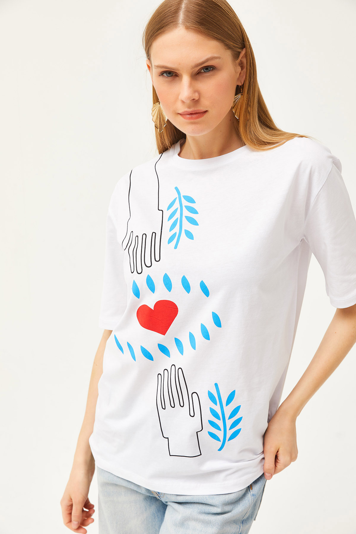 Kadın Ekru Kabartma Baskılı Tişört TSH-19000777 Kadın Ekru Kabartma Baskılı Tişört TSH-19000777 XL