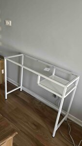 Modern Beyaz Renk Metal İskeletli Temper Camlı Laptop Çalışma Masası Makyaj Masası Modern Beyaz Renk Metal İskeletli Temper Camlı Laptop Çalışma Masası Makyaj Masası 626 تک سایز
