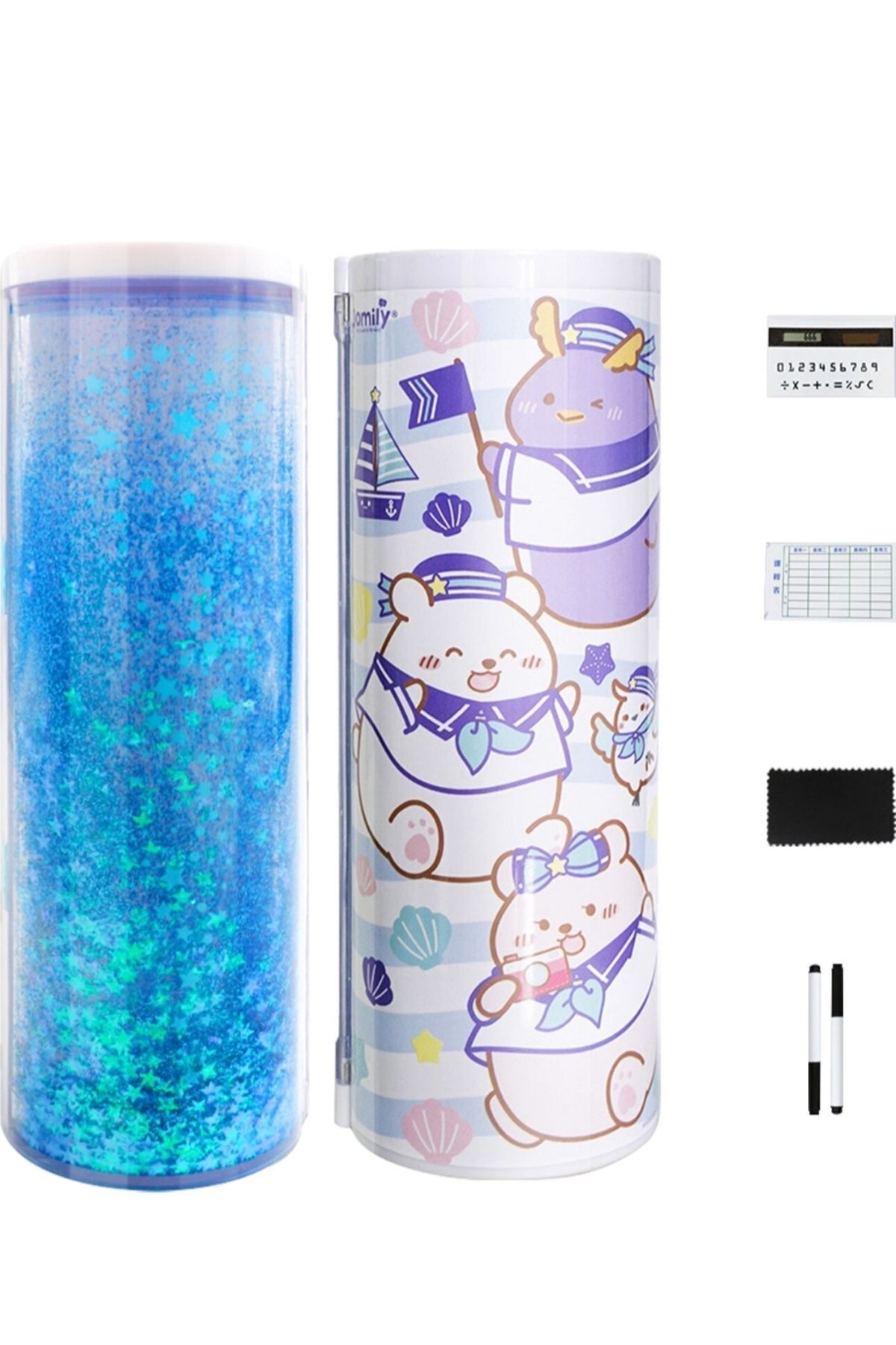 Simli Işıltılı inek Kalem Kutusu Vegan Deri Kalemkutu Üç Bölmeli Kalemlik - Mor simli2024