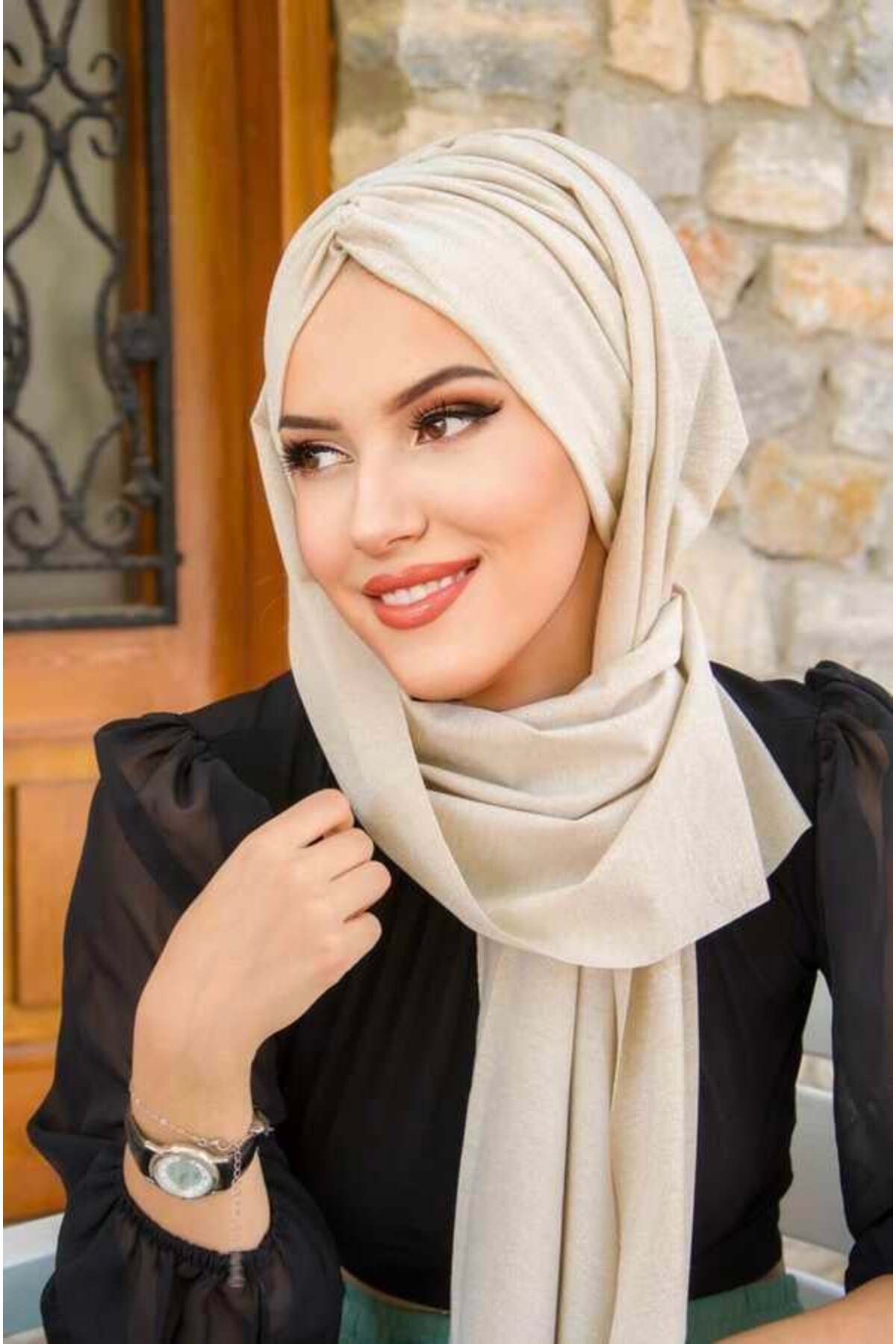 Ekru Simli Kelebek Çapraz Bantlı Bone Şal Ekru Simli Kelebek Çapraz Bantlı Bone Şal 50605 Standart