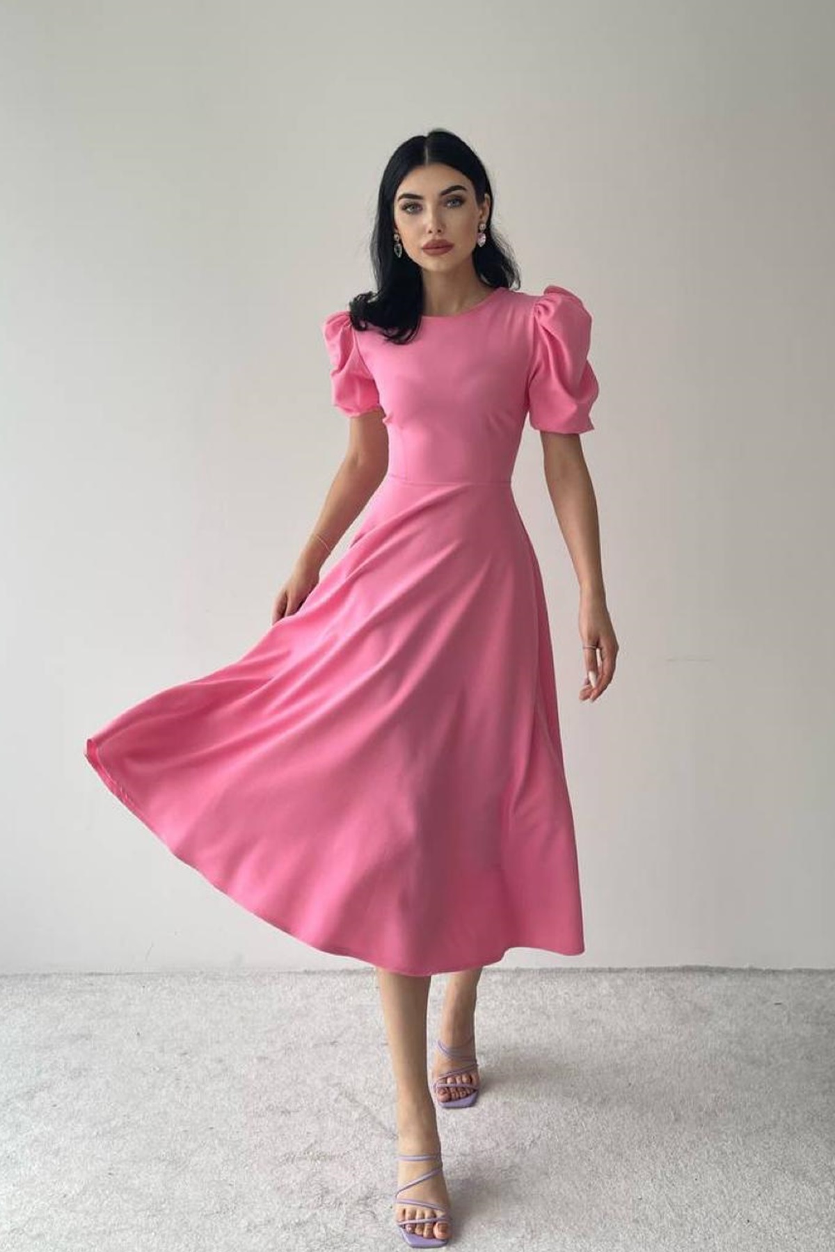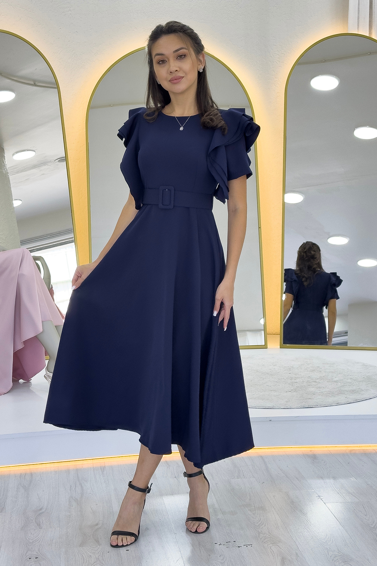 Kadın Atlas Kumaş Yuvarlak Yaka Prenses Kol Kloş Kesim Midi Boy Saks Mavi Abiye Elbise 220 Kadın Atlas Kumaş Yuvarlak Yaka Prenses Kol Kloş Kesim Midi Boy Saks Mavi Abiye Elbise 220 BS-ETC-220 XL
