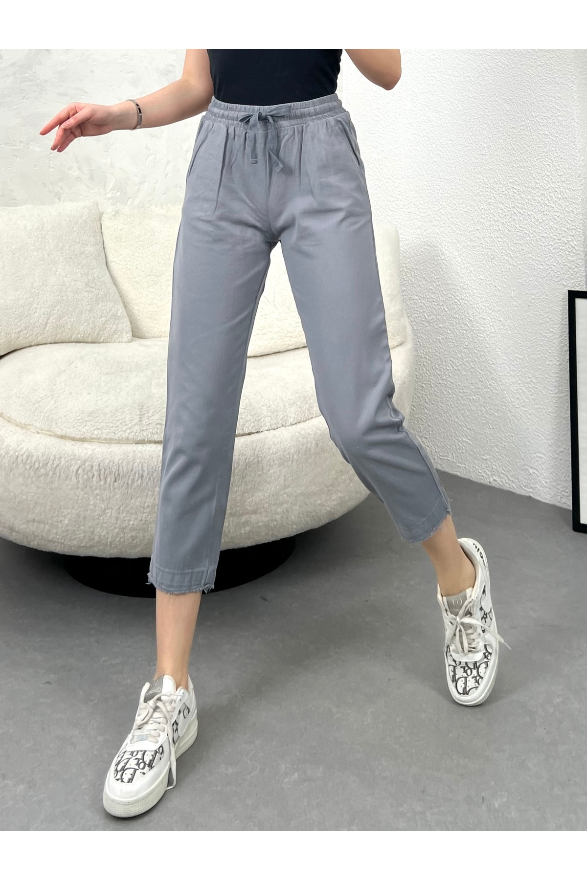 Kadın duble paça bürümcük kumaş pantolon gri Kadın duble paça bürümcük kumaş pantolon gri CML1408 2XL