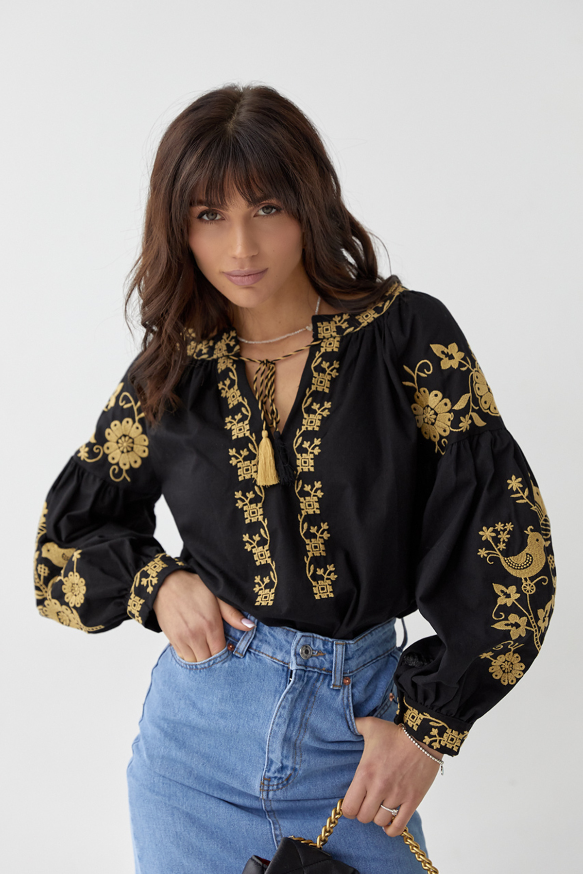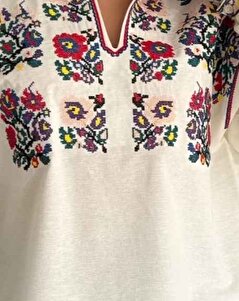 Kadın Kanaviçe Nakış İşlemeli Balon Kol Pamuklu Bluz Kadın Kanaviçe Nakış İşlemeli Balon Kol Pamuklu Bluz 5455 L