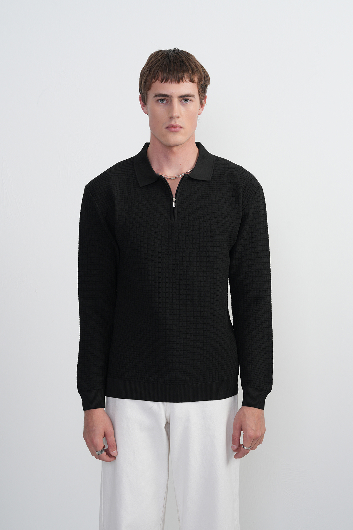 Siyah Fermuarlı Uzun Kollu Polo Yaka T-shirt Kazak Siyah Fermuarlı Uzun Kollu Polo Yaka T-shirt Kazak PY001 2XL