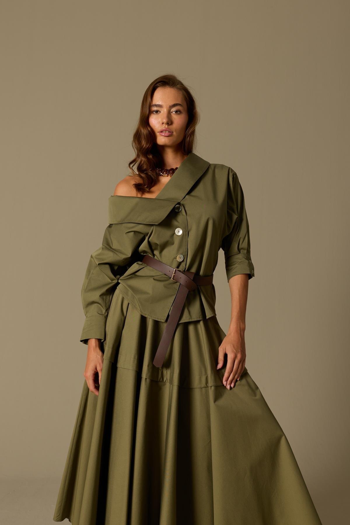Ekru Tek Omuzu Açık Asimetrik Yapılı Belden Bağlama Detaylı Geniş Kalıp Uzun Kollu Gömlek Ekru Tek Omuzu Açık Asimetrik Yapılı Belden Bağlama Detaylı Geniş Kalıp Uzun Kollu Gömlek ST090S554560001 XL